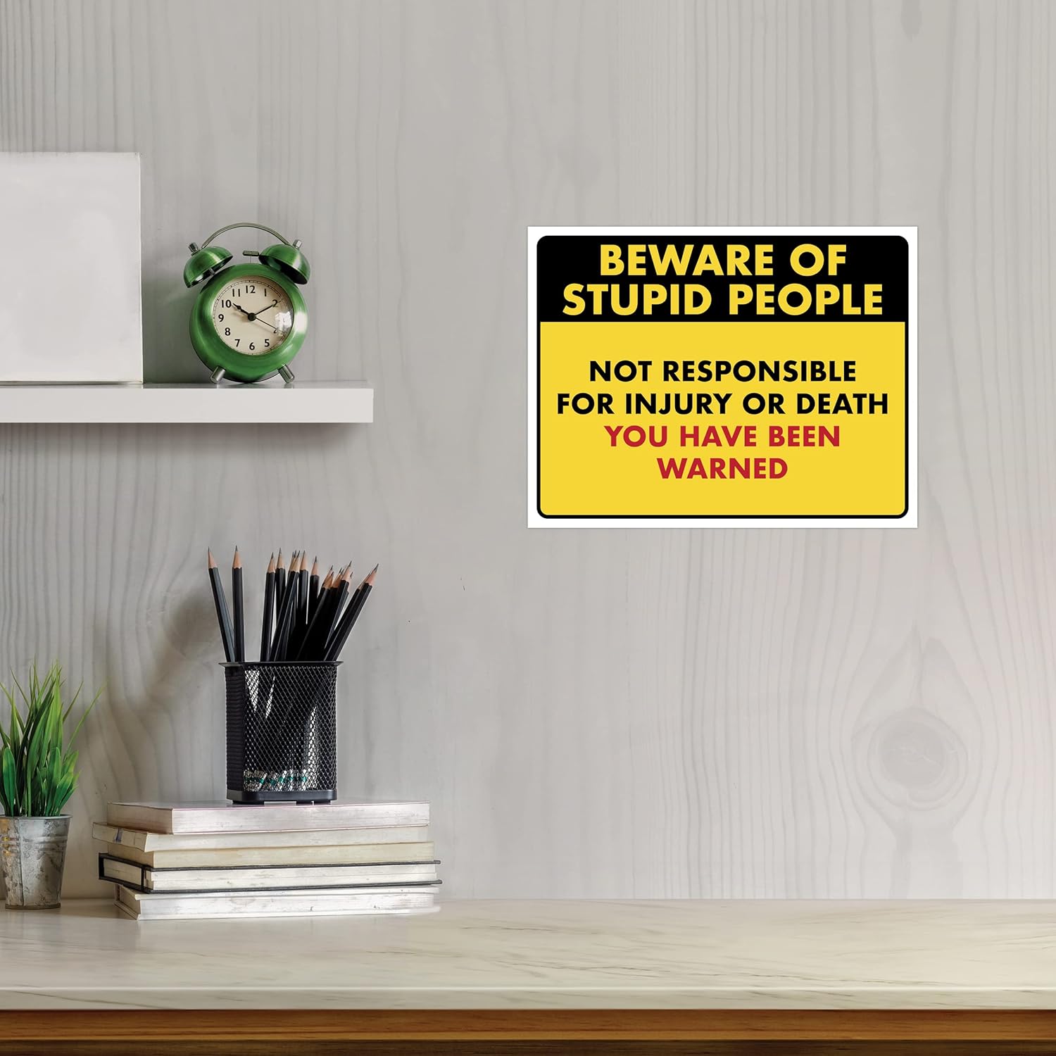 Beware of Stupid People - Humorous Laminated Sign - 8.5" x 11" - Funny Garage Sign, Office Wall Decor, Mechanic Gift, Street Sign for Bedroom - ENVISIONED Signage