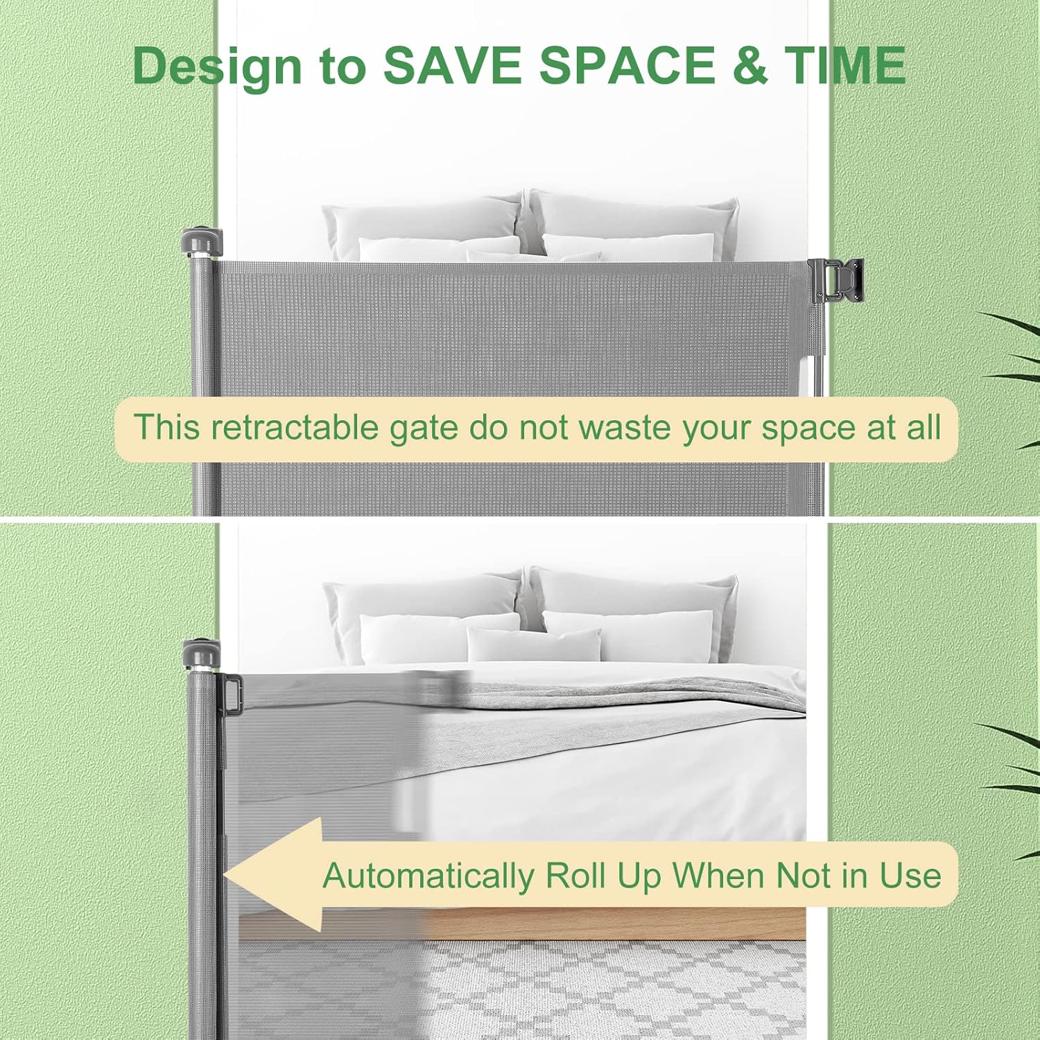 - 【180cm/71 Inch Wider Retractable Stair Gate】Extra Wide Retractable Gate is 33"(86cm) tall and up to 71"(180cm) width. The retractable design allows to adjust the gate to any angle. Ideal for various wide gates, hallways, stairs, or entrances, suitable for both indoor and outdoor. (The stair gate for baby includes components for easy installation)