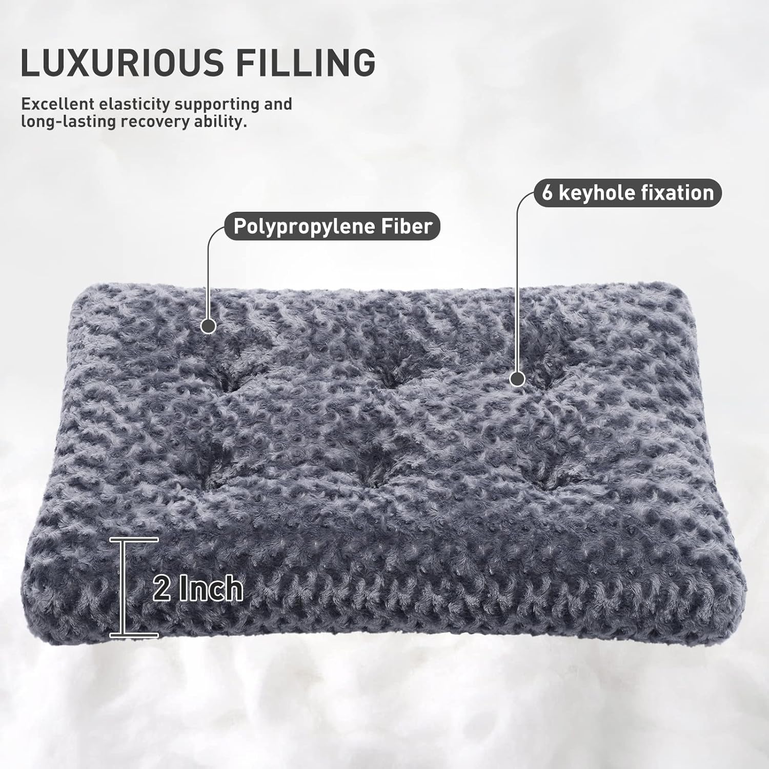 - Luxurious Padding Support - Filled with 2" premium polypropylene fiber through 4 keyhole fixation, excellent elasticity supporting and long-lasting recovery ability, effectively comforts dogs with strong supports to bony and joint areas, pressure relief, relieve joint pain, body aches, arthritis.