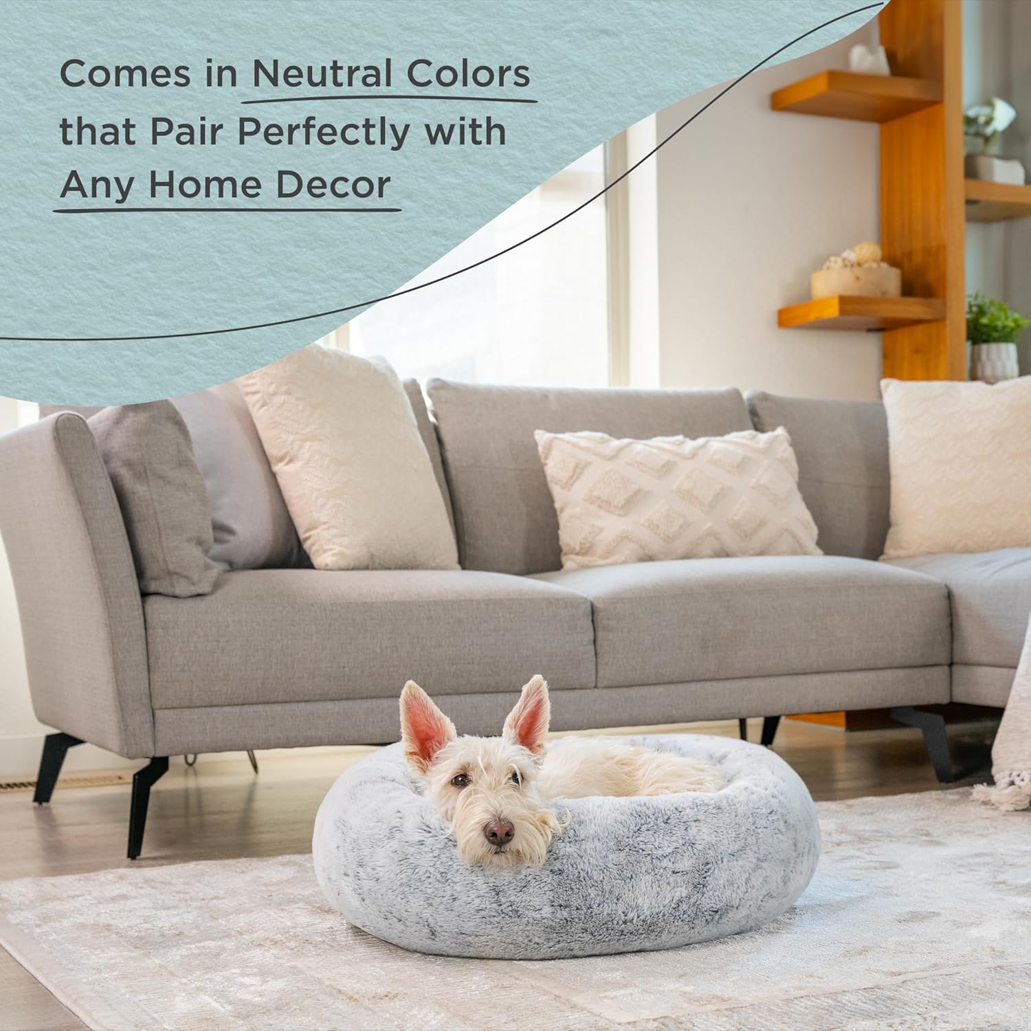 Best Friends by Sheri SnuggleSoft Faux Fur Calming Donut Bed for Dogs, Gray, Small, 23x23