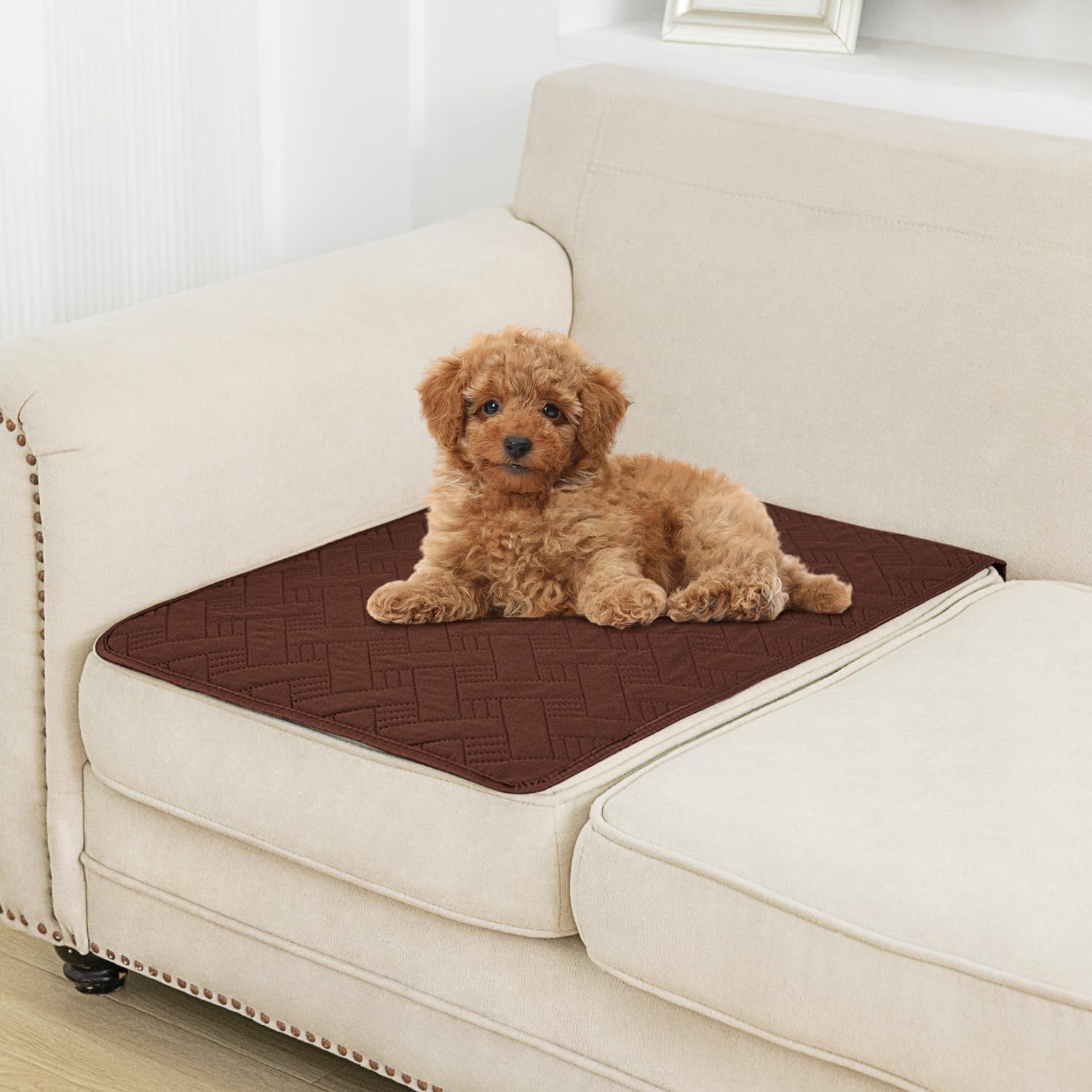 Dog Bed Cover for Pets - Blankets Rug Pads for Couch Protection Waterproof Bed Covers Dog Blanket Furniture Protector Reusable Changing Pad (Brown+Beige, 20"x30")