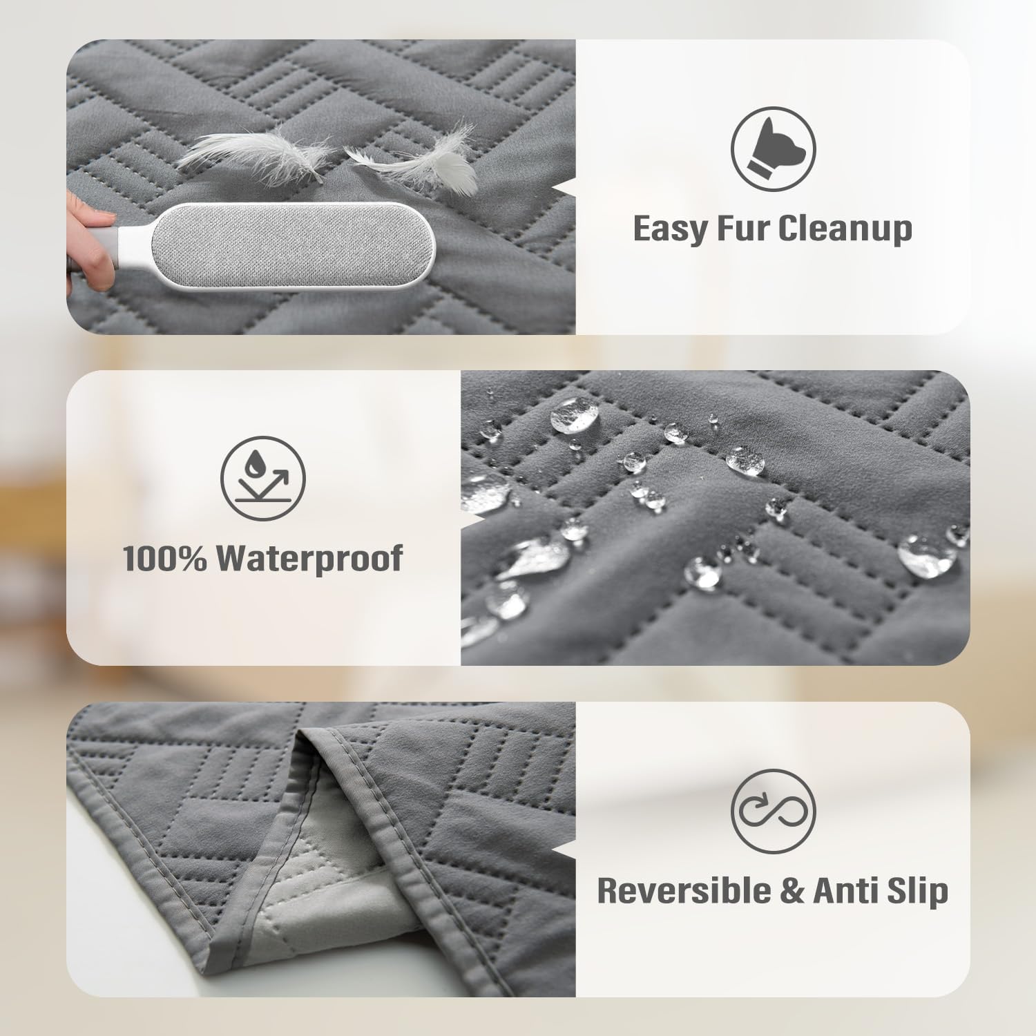 Dog Bed Cover for Pets Blankets Rug Pads for Couch Protection Waterproof Bed Covers Dog Blanket Furniture Protector Reusable Changing Pad (Dark Grey+Light Grey, 82"x82")