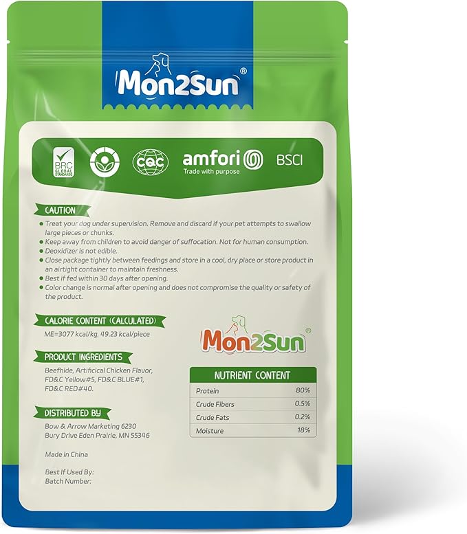 MON2SUN Dog Rawhide Rolls Twist Sticks 6.5 Inch Chew Treats Chicken Flavor 60 Count for Puppy and Small Dogs