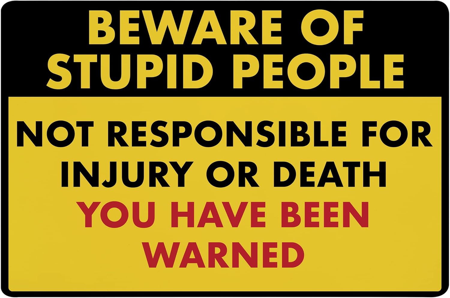 Beware of Stupid People - Humorous Plastic Sign - 8" x 12" - Funny Garage Sign, Office Wall Decor, Mechanic Gift, Street Sign for Bedroom - ENVISIONED Signage