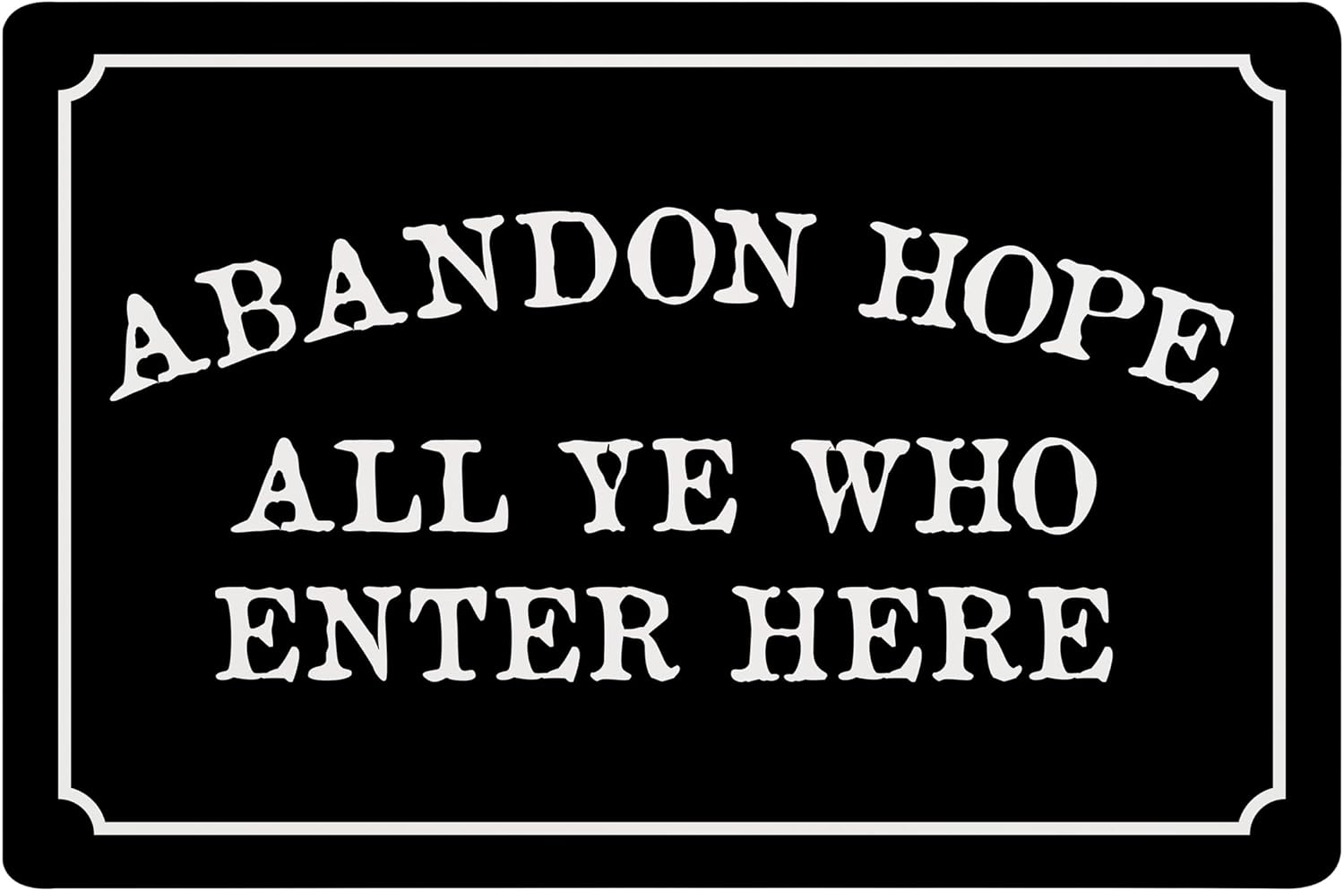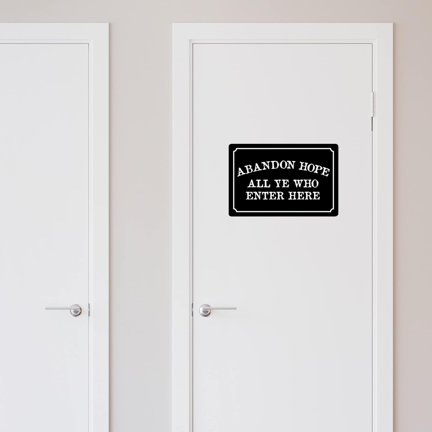Abandon Hope All Ye Who Enter Here - Humorous Plastic Sign - 8" x 12" - Vintage Halloween Decor, Home Office & Man Cave Décor - ENVISIONED Signage