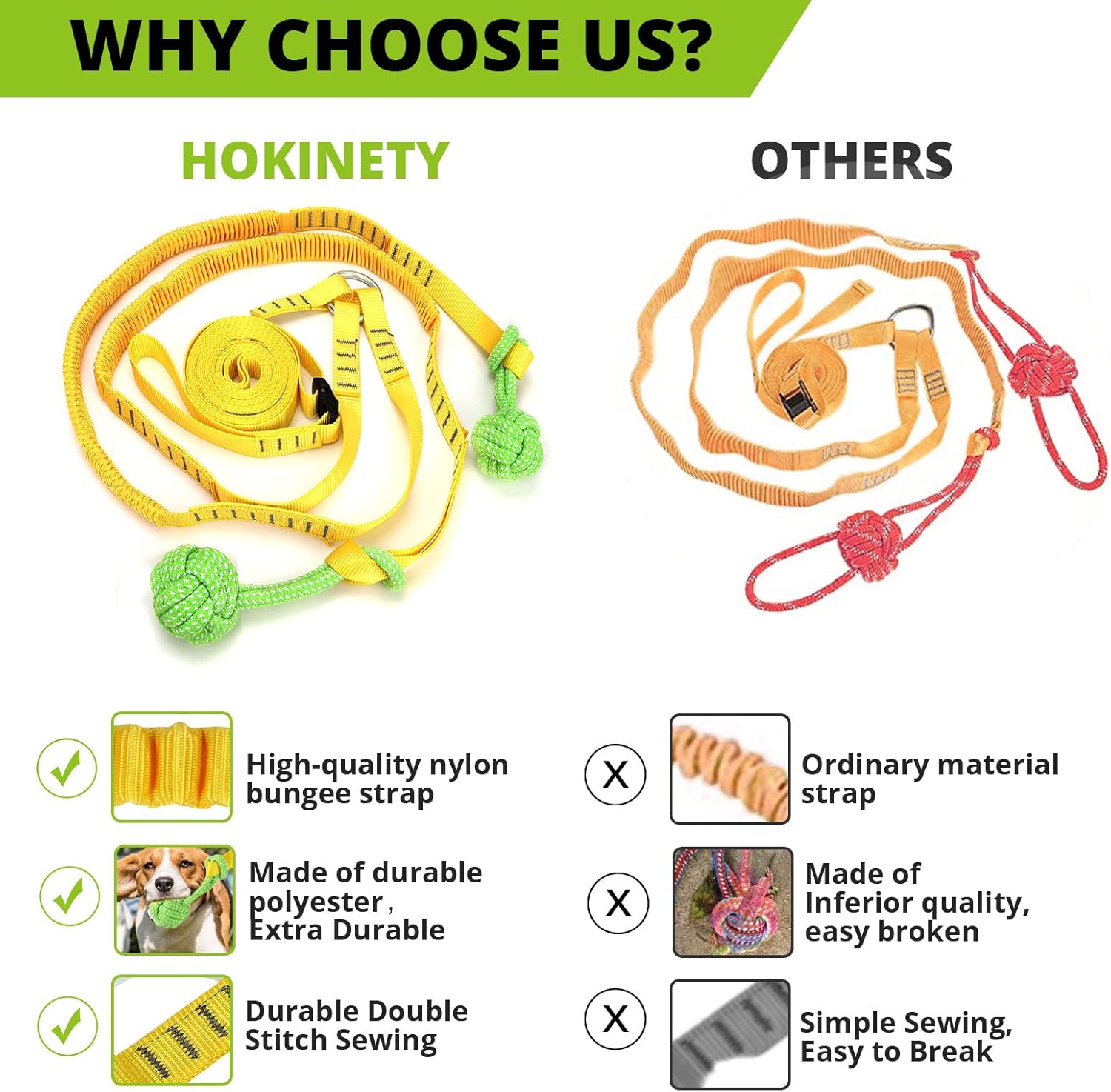 - 🐶Easy to Hang & Height Adjustable: Our new design help you hang this sturdy hanging bungee dog tug toy easily by yourself in minutes. You simply loop the strap through the ball rope toy and toss the bungee cord over the strong tree limb, wrap it around and tighten it to complete the hang. You can adjust the height of the bite toy by the buckle for a total length of up to 21 feet