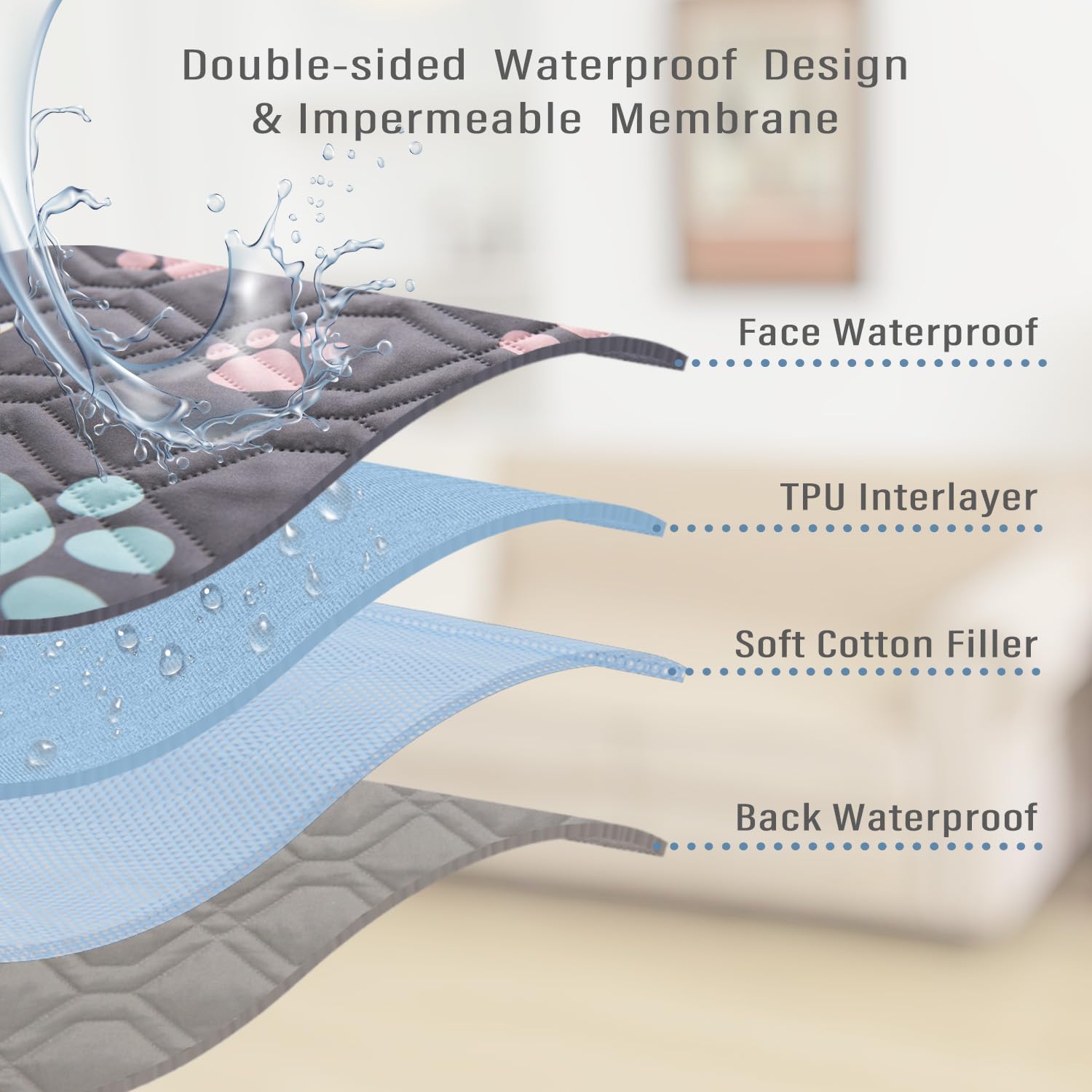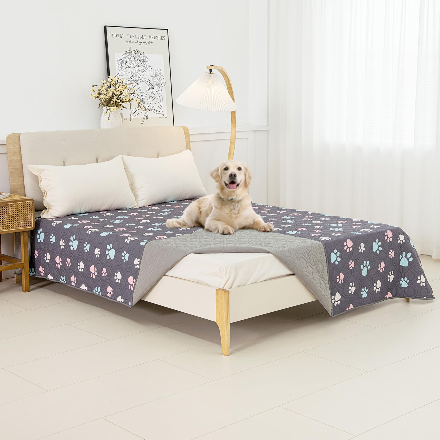 Dog Bed Cover for Pets Blankets Rug Pads for Couch Protection Waterproof Bed Covers Dog Blanket Furniture Protector Reusable Changing Pad (Dark Grey+Colorful Paw, 82"x82")