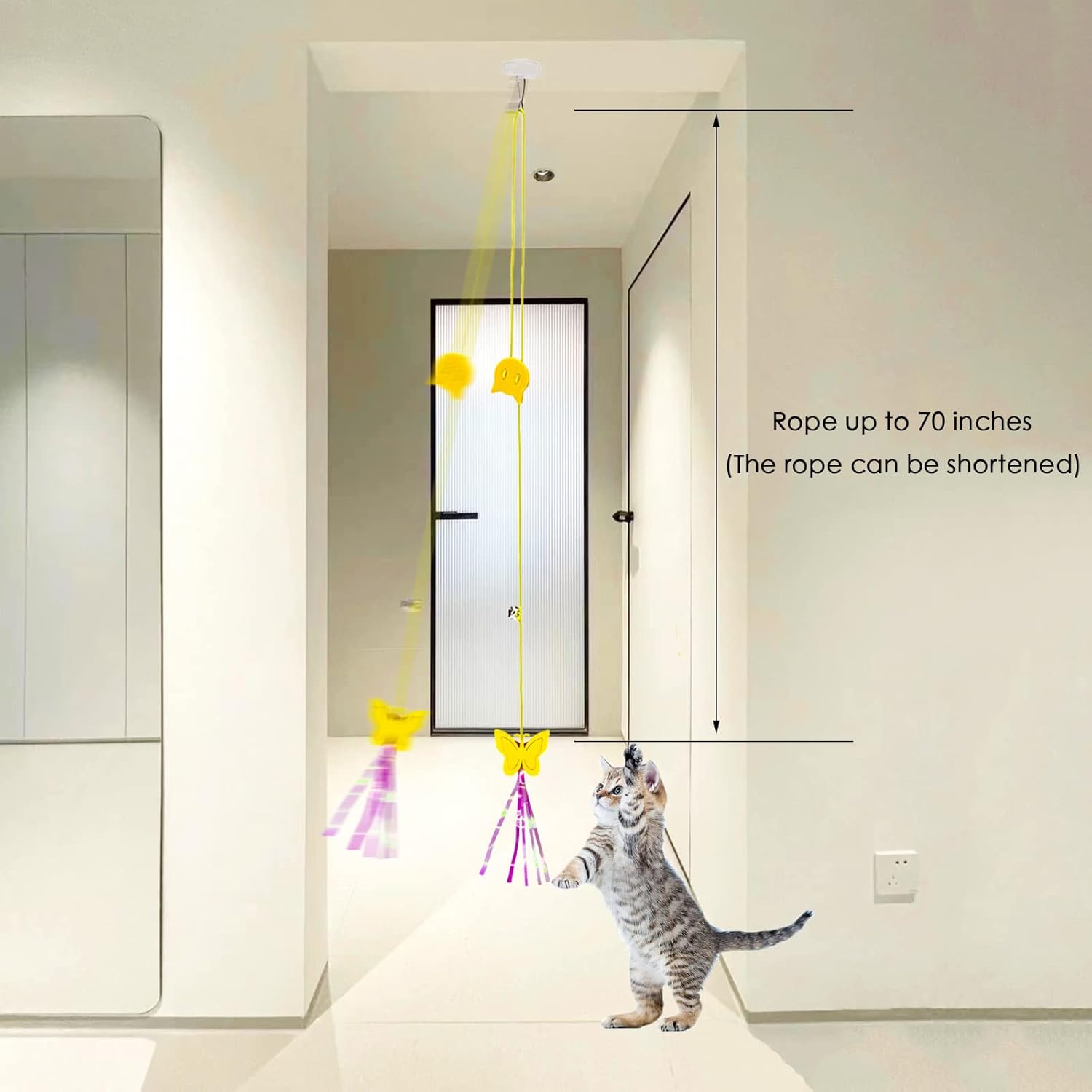 - 【Adjustable rope design】: This hanging cat toy rope can be adjusted from 10 inches to 70 inches, it can be in your work, sitting on the sofa to watch the cat and play with it, it can also be used for a group of cats, very cost-effective, and when you are not around the cat, you do not have to worry about the cat will be alone, it will become the best partner for cats.