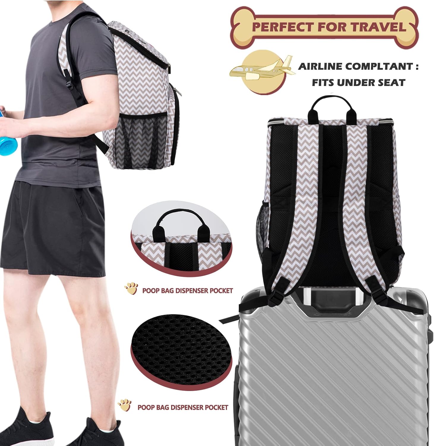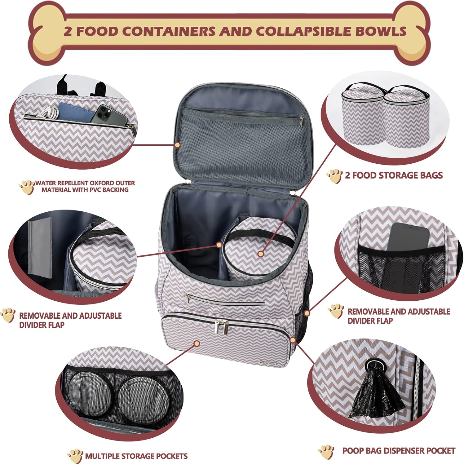 BAGLHER Dog Travel Bag Backpack, Airline Approved Pet Supplies Backpack, Dog Travel Backpack with 2 Silicone Collapsible Bowls and 2 Food Baskets BLW