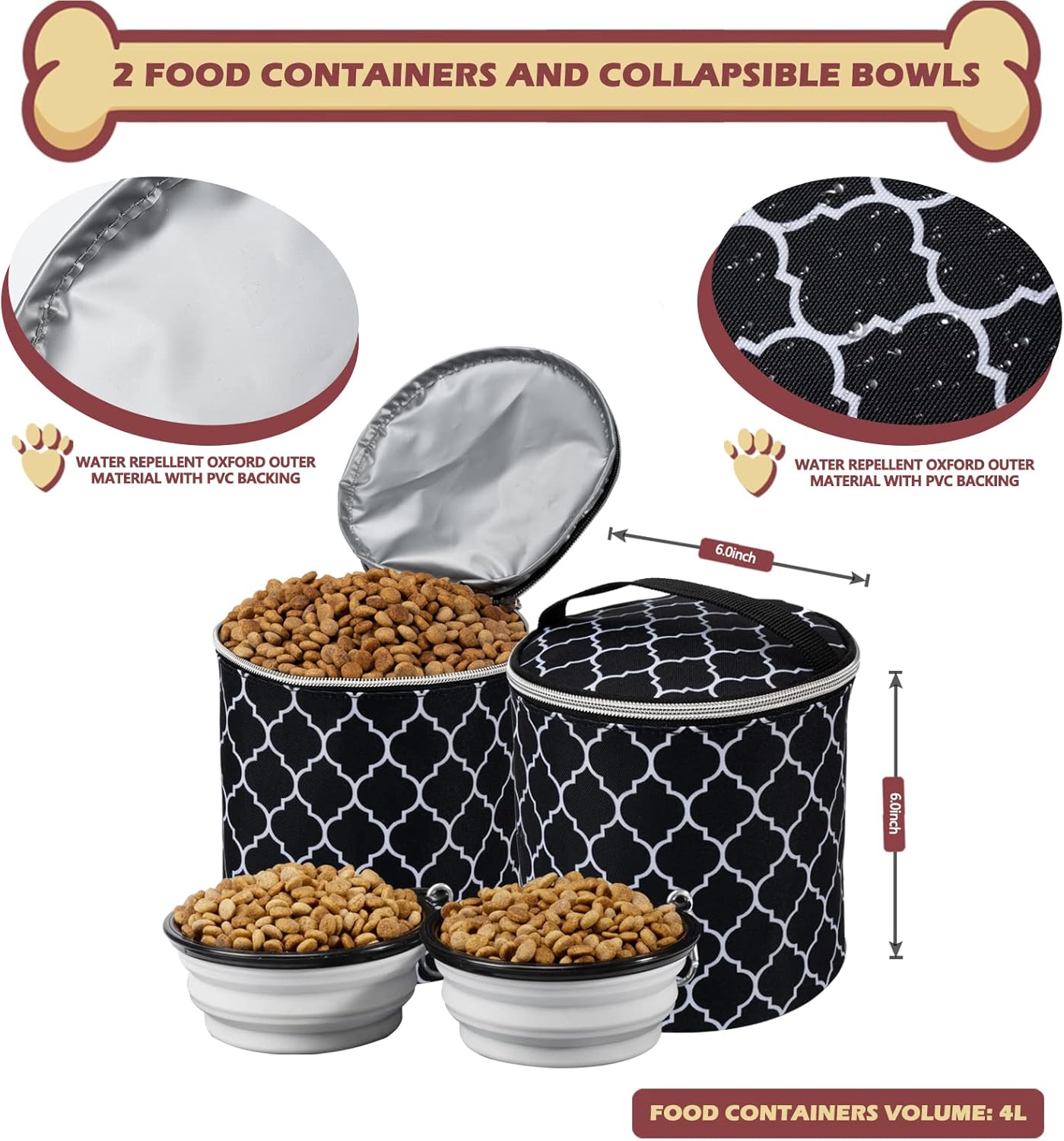 - IDEAL TRAVEL:This pet backpack can accompany you and your pets to spend happy time no matter when and where; Its front pocket is opened as a feeding pad, and the side mesh pocket can carry a kettle and towels,each food container can hold 12 -15 cups of coarsely ground food to meet your needs for easy pet feeding anytime,anywhere.
