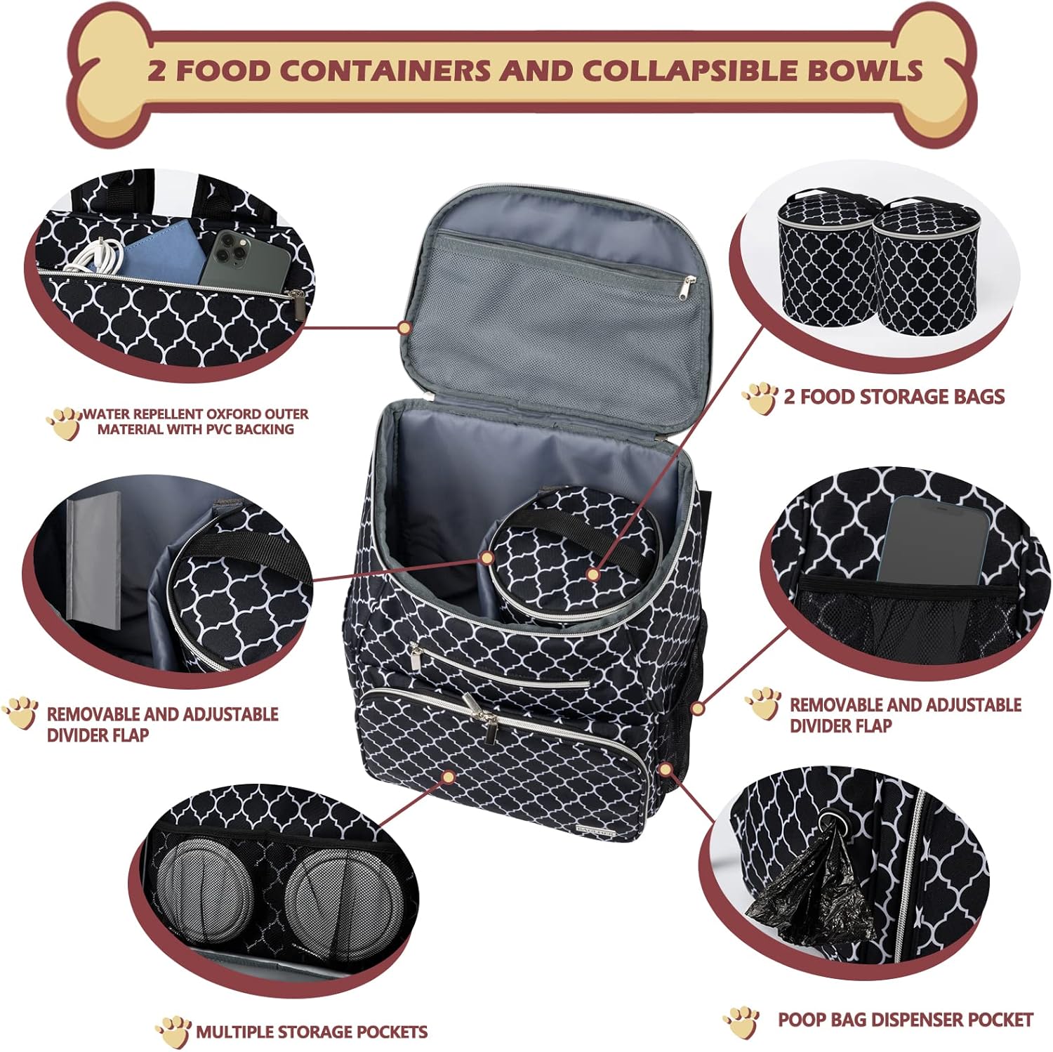 - SUFFICIENT REASONABLE SPACE FOR USE- Dog bags for traveling with many compartments pockets and separators for optimized organization.2 separate carrying bags for carrying food,which are insulated and very convenient to clean,ensuring a clean and hygienic food environment for pets. The main compartment allows you to pack and organize skillfully and use pet/dog/cat/puppy items.