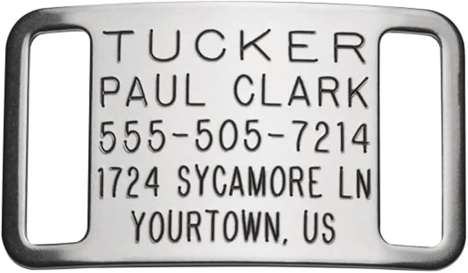 - CUSTOMIZATION - When deciding what to have engraved on your tag, consider how you want people to contact you, if by phone or by showing up at your house. Less text on the tag means larger lettering, which makes it easier for the finder of your lost pet to read.