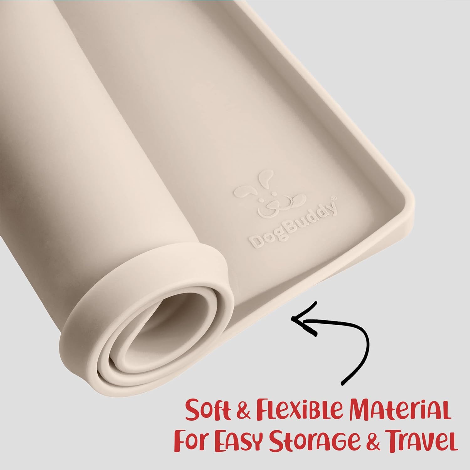DogBuddy Dog Food Mat – Waterproof Dog Bowl Mat for Food and Water, Silicone Pet Feeding Mats for Floors, Non-Slip Placemat with High Edges for Dogs Bowls, Puppy Essentials (S: 19" x 12", Vanilla)