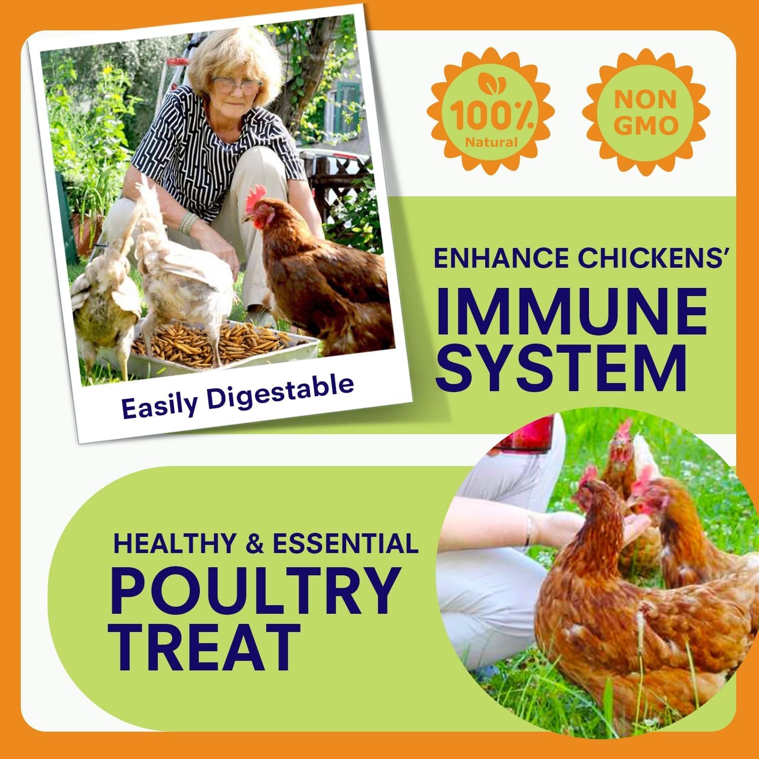 - 【Healthier Feather & Strong-Shelled Eggs】MEILLEURE BSFL are natural supplement that help chicken receive sufficient amino acids(Lysine & Methionine) during molt. The high levels of protein and amino acids of BSFL ensure chicken’s healthy feather regrowth. Also, the BSFL have an optimal phosphorus to calcium ratio that enable superior eggshell strength during nesting seasons, so it's not easy to find broken eggs in your coop.