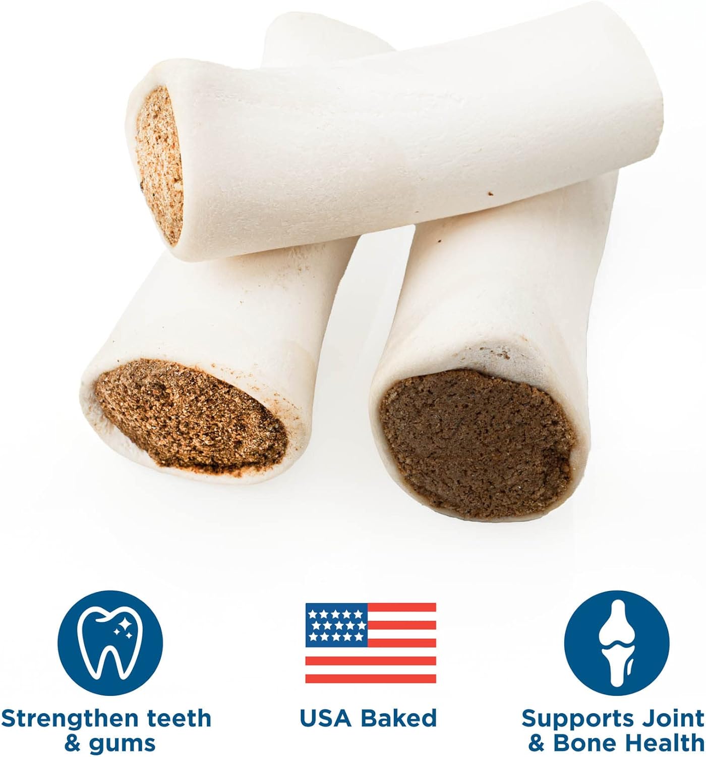 - Savory filled delight: Treat your dog to the irresistible taste of a variety of flavors: Bully Blend, Peanut Butter, and Bacon & Cheese. Our stuffed bones for dogs are made from high-quality, natural center-cut shin bones and filled with a delicious flavors that dogs love.