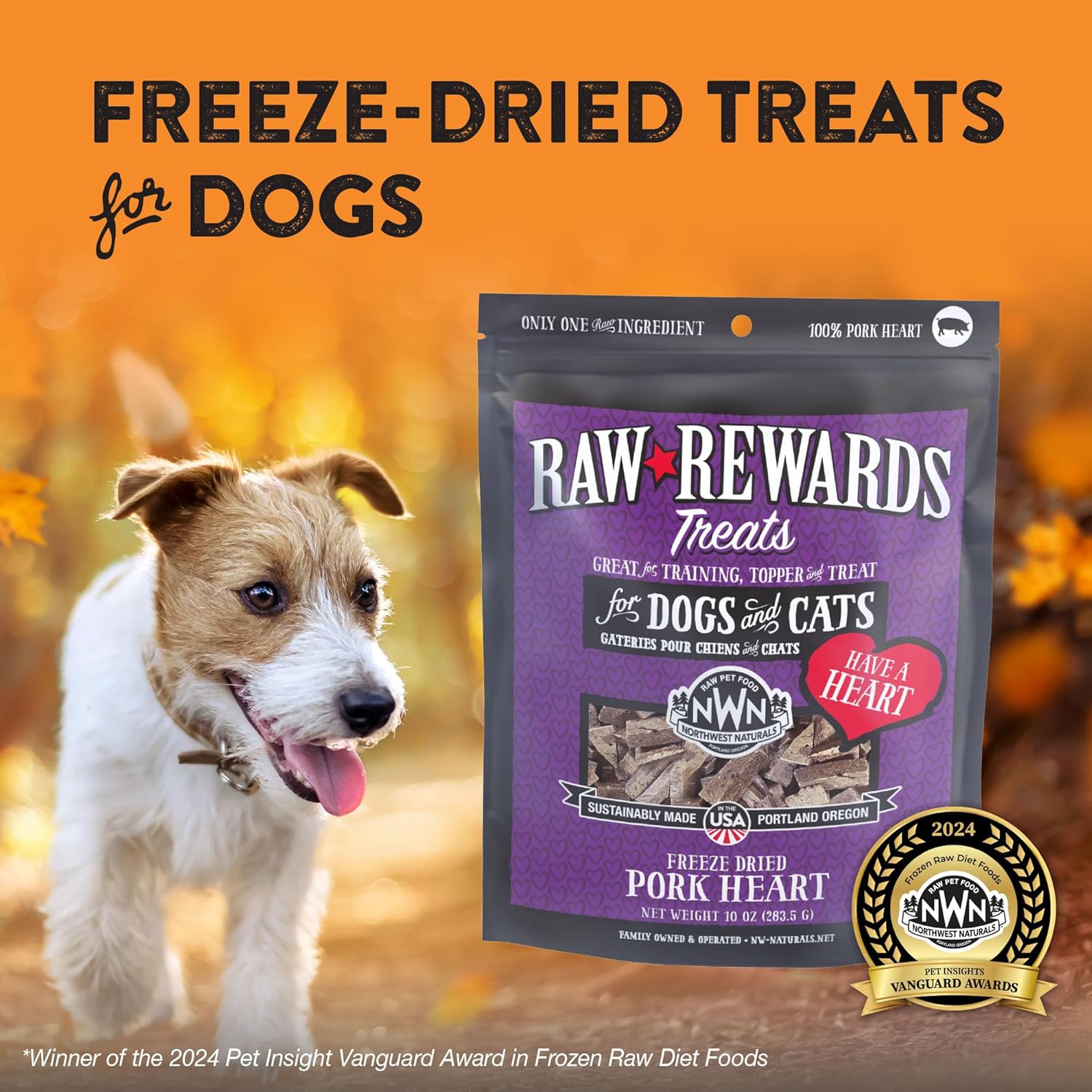Northwest Naturals Raw Rewards Freeze-Dried Pork Heart Treats for Dogs and Cats - Bite-Sized Pieces - Healthy, 1 Ingredient, Human Grade Pet Food, All Natural, Proudly Made in USA, 10 Oz