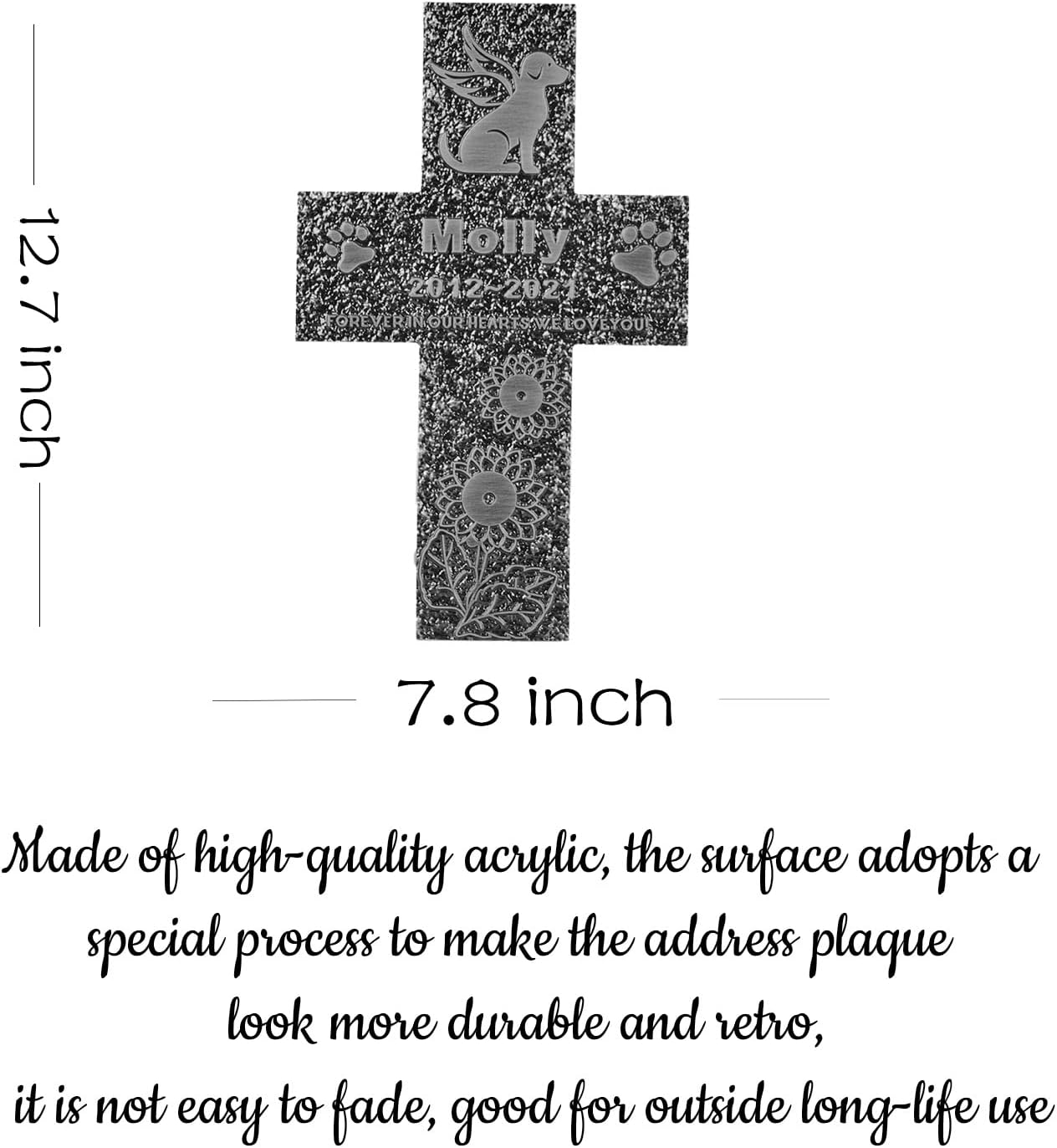 - Unique Personalized Pet Tombstone: Everything is customizable, including your pet's name, date of birth, paw prints and a touching word you most want to say to your pet to create a one-of-a-kind final gift for your pet. Immediate free customization: please click the Customize Now button in the upper right corner, and then fill in the customization information