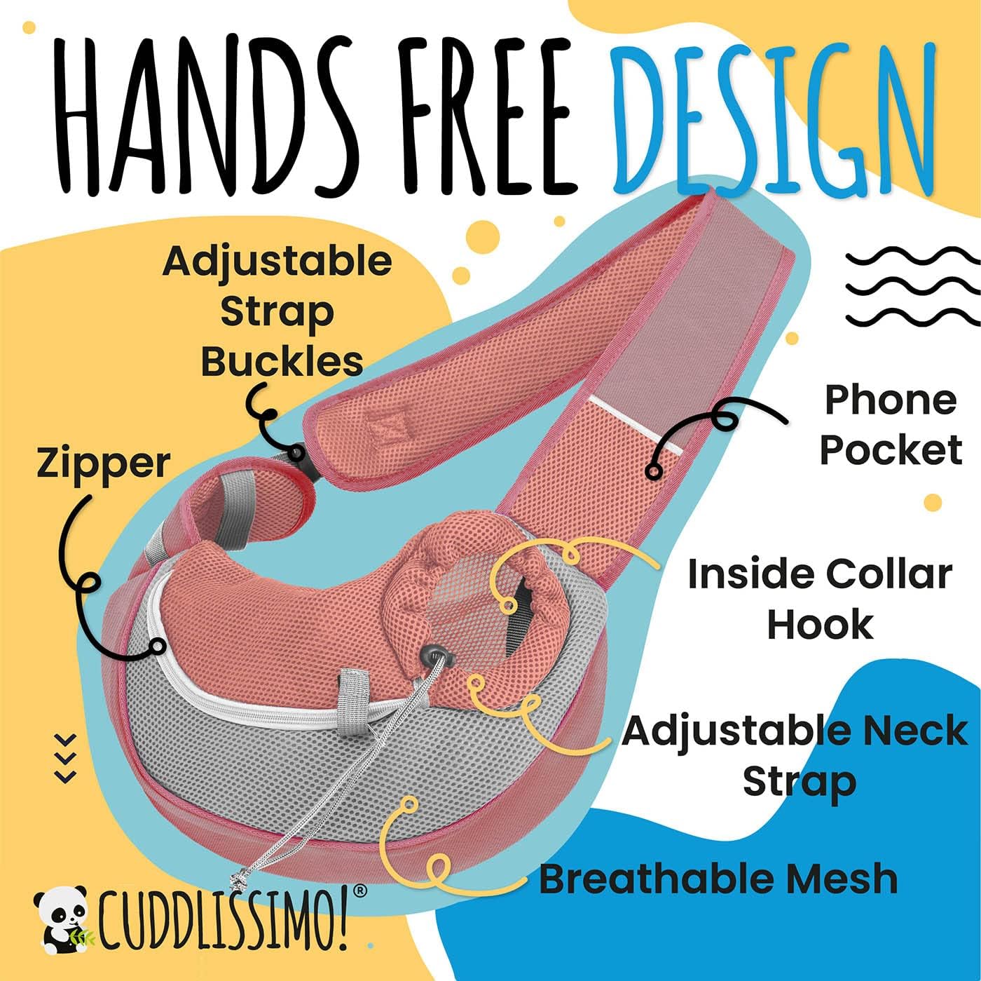 - ๐ถ HANDS-FREE DESIGN - This sling keeps your pet close. Click the buckle strap into place and start walking, biking, or shopping! Carry your pet everywhere!
