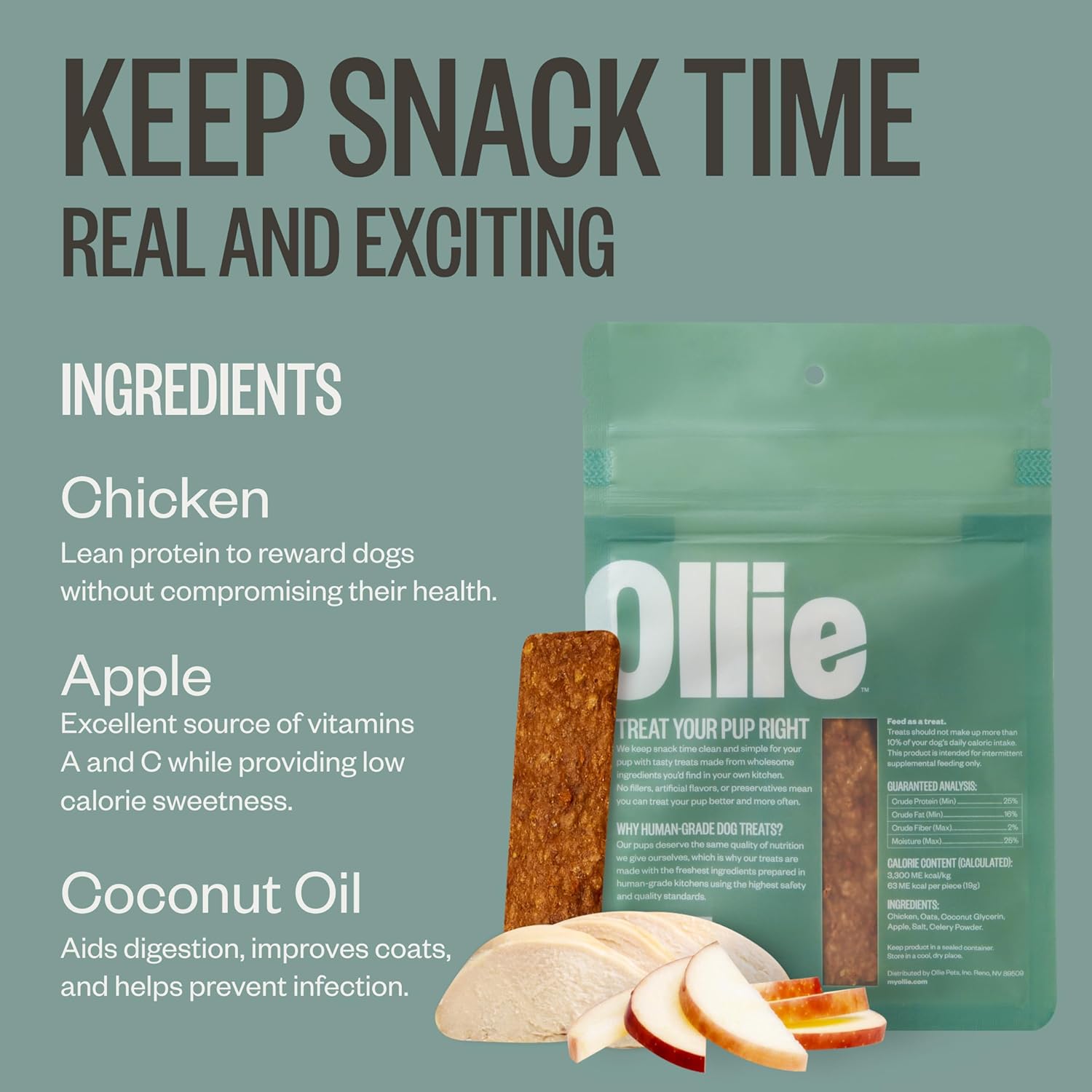 Ollie Chicken and Apple Jerky Dog Treats, 5 oz Pack of 3, All Natural, Healthy Snacks, Made with Real Meat, Human Grade, for Dogs