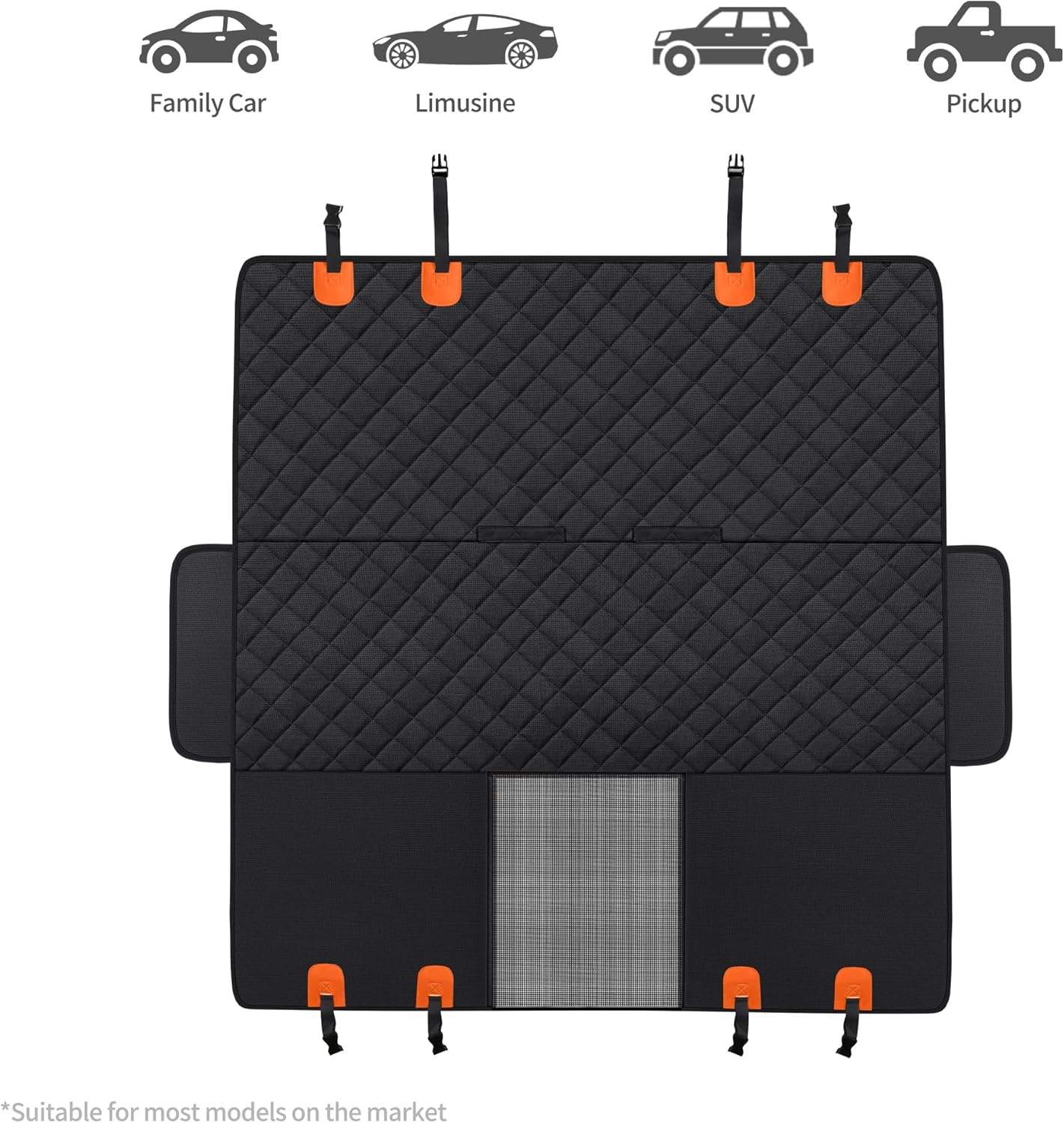 - [ UNIVERSAL SIZE ] -The universal fit (53Wx57L inches) dog seat covers fit most standard cars, SUVs and small trucks. and with a 60-second super EASY and fast installation, you’ll be ready to go with the backseat dog cover for cars in no time!