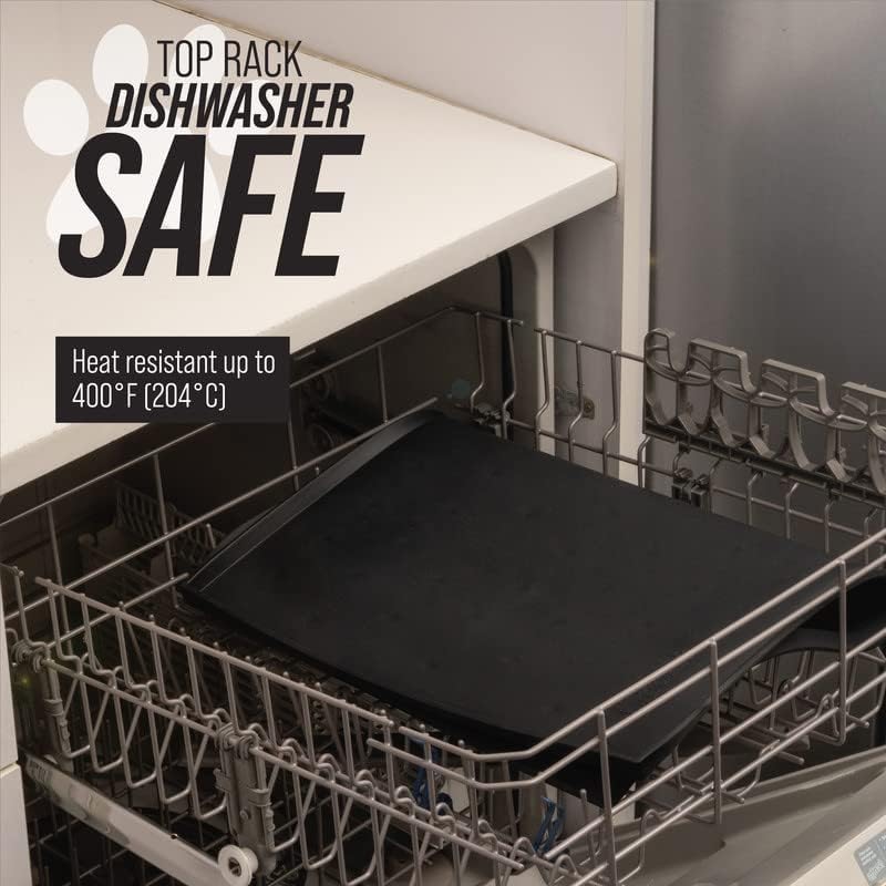 - Non-Toxic Pet Mat: Our strong and flexible pet bowl pad is both durable and safe for pets. Made from thermal resistant, food-grade silicone, our waterproof pet mat is 100% BPA, PVC, and phthalate-free.