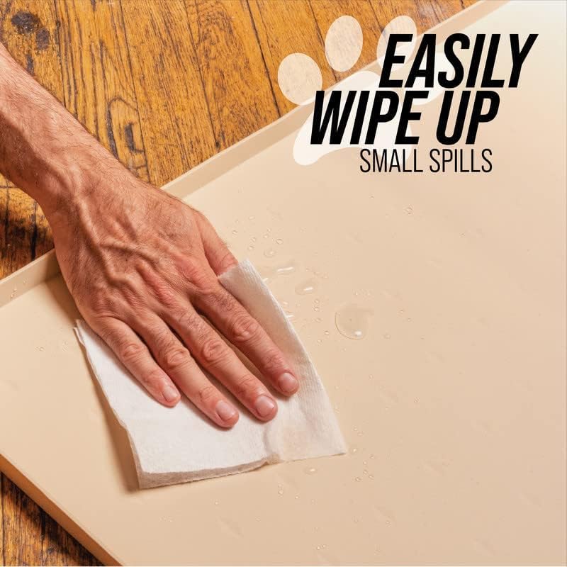 - Extra-Tall Spill Proof Lip: The Leash Boss dog water mat comes with .6" raised edges to contain kibble and prevent water and spills from rolling over the edge. The perfect tray for dogs and cats who are energetic eaters!