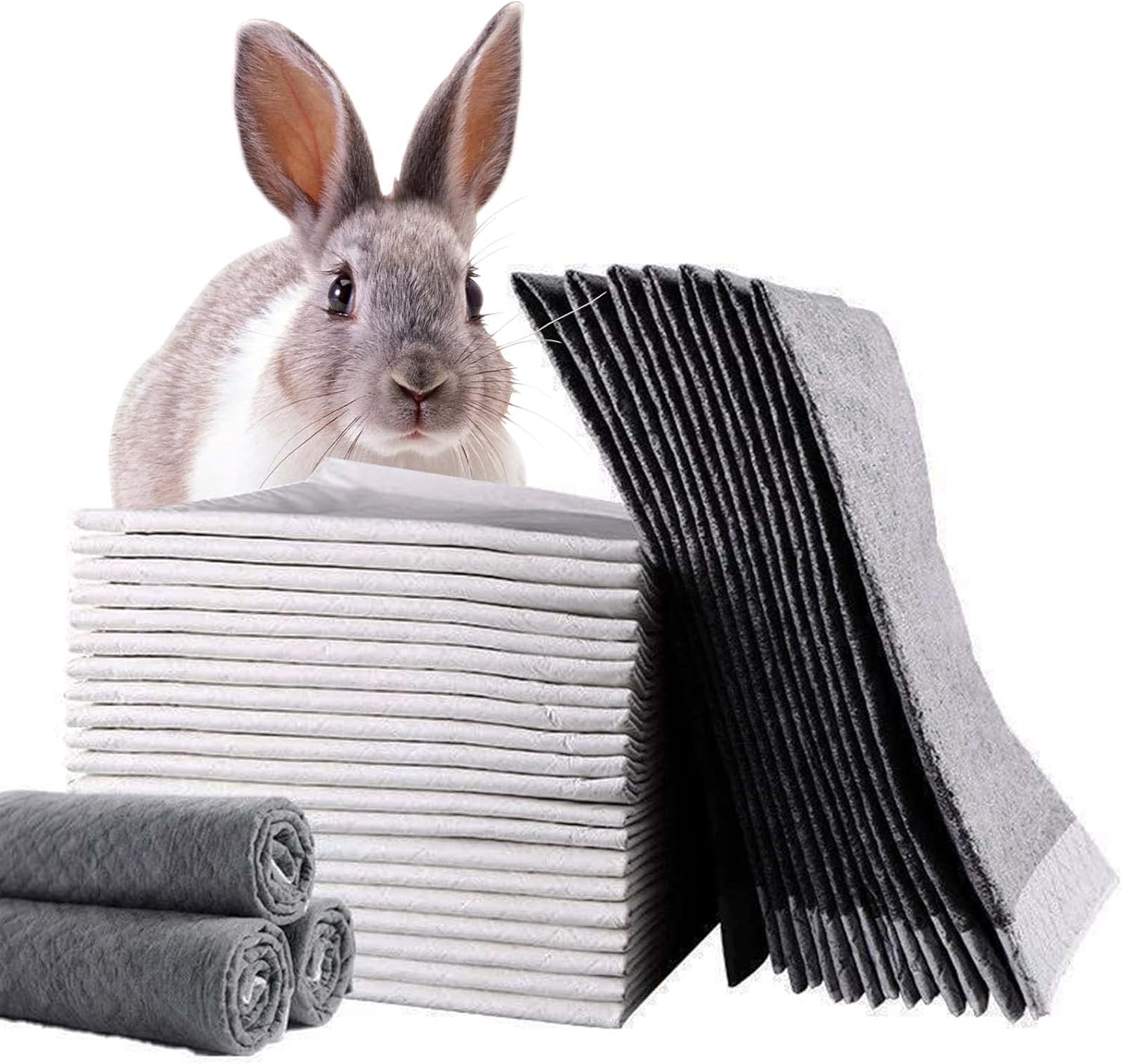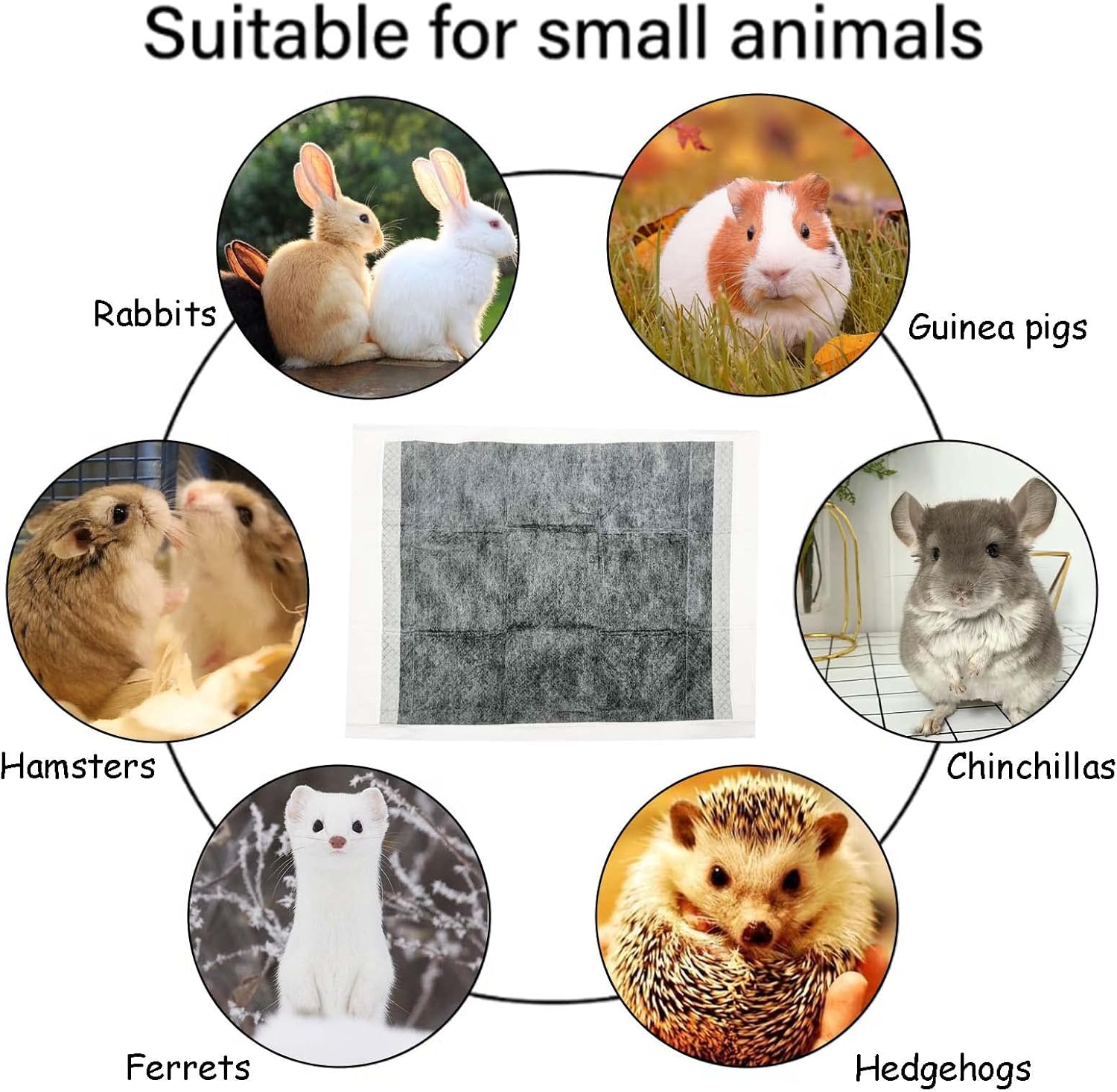 Tfwadmx 50 Pcs Rabbit Pee Pads Guinea Pig Super Absorbent Cage Liners Bunny Disposable Black Carbon Diapers Small Animal Training Accessories with Quick-Dry Surface for Chinchilla Ferret Hamster
