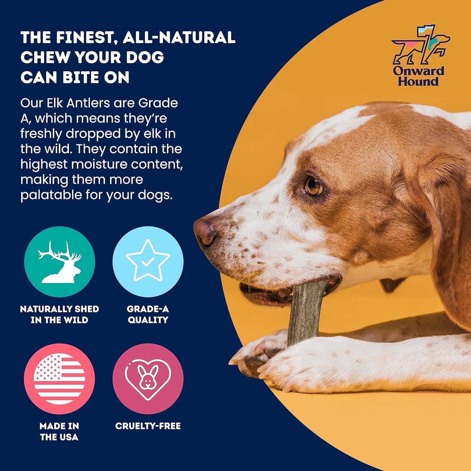 Onward Hound Elk Antlers for Dogs, 6"+ Medium 3-Pack, Grade A Long Lasting for Aggressive Chewers, Premium USA Naturally Shed Antler - Healthy, No Odor, Durable Chew for 15-35lb Breeds