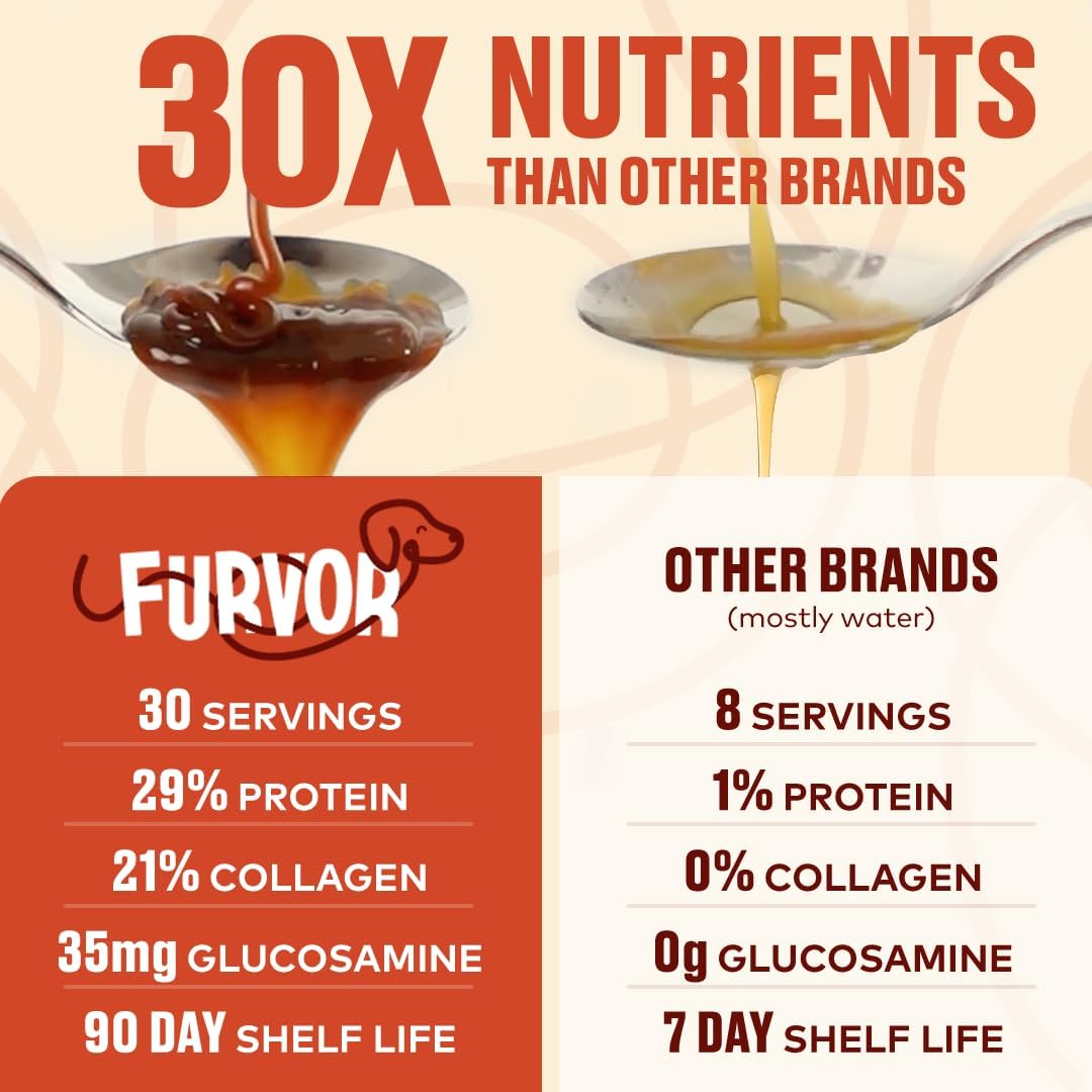 - Enhance Mealtime Joy: Treat your furry friend to the rich flavor and wholesome goodness of Furvor Beef Bone Broth for Dogs, a delectable addition to their daily diet. Only all natural ingredients, free from gluten, soy, eggs, dairy, and nuts are used. No worries about giving your dog any artificial color, flavors, or preservatives..