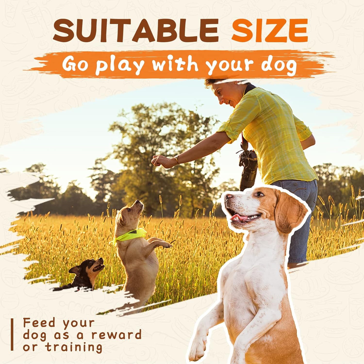 - Interaction reward & emotional relief: Feeding your dog with this dog treat as interaction and training reward can encourage them to follow your instructions, and increase intimacy, help you establish a stronger relationship with your dog. At the same time, it can also help dogs to relieve tension and anxiety, which is conducive to their mental health