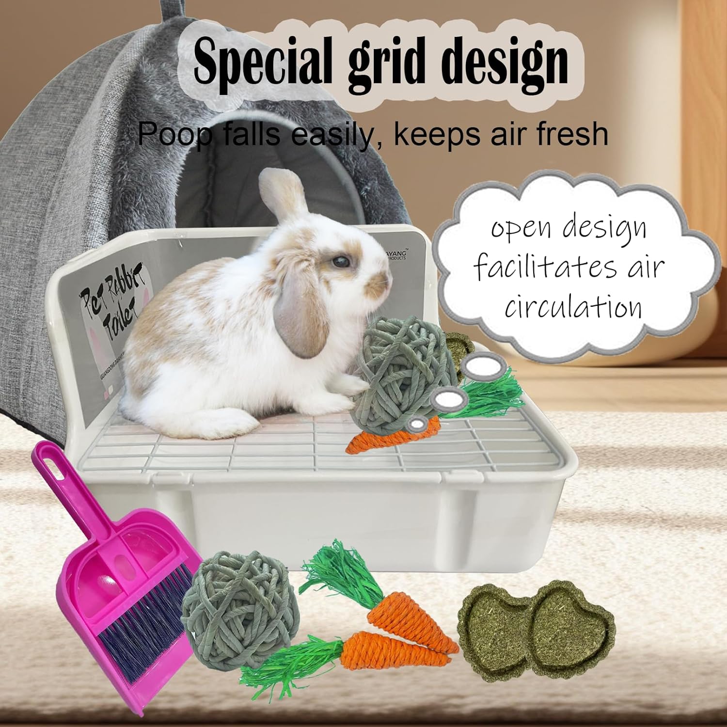 - 【QUALITY SAFETY】Potty box for rabbits are made of sturdy plastic material,tray grid is made of iron Safe and durable,easy to clean.Tray grid design,Pet droppings are easy to fall.bunny litter box also helps with pet potty training.Our bunny toilet can be as ferret litter box,rat litter box,chinchilla litter box to use