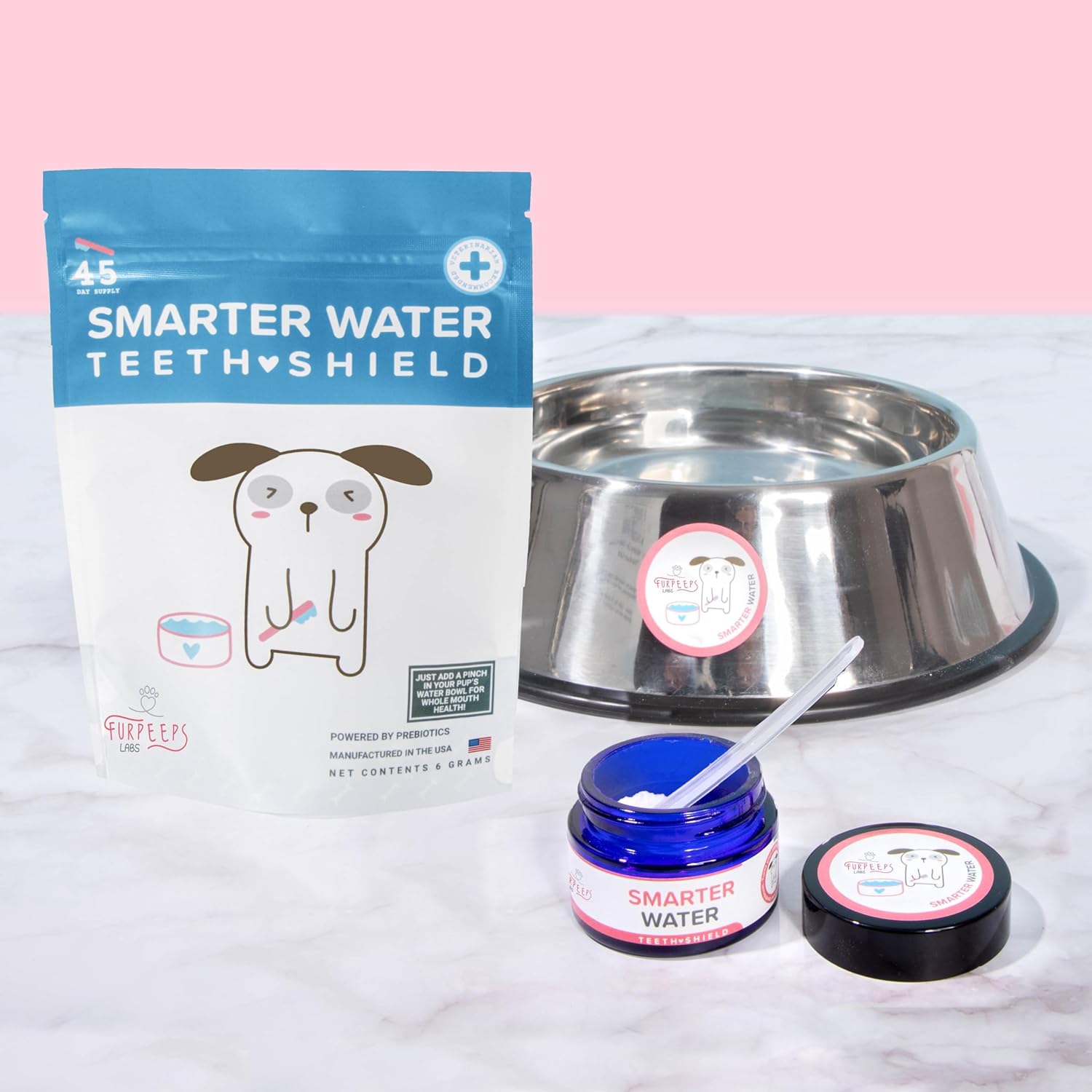 Furpeeps Dog & Cat Dental Care Powder for Water – 45 Servings – Dog Breath Freshener - Natural Plaque & Tartar Remover, No-Brush Oral Hygiene for Puppies, Seniors & Multi-Pet Homes – Vet Recommended