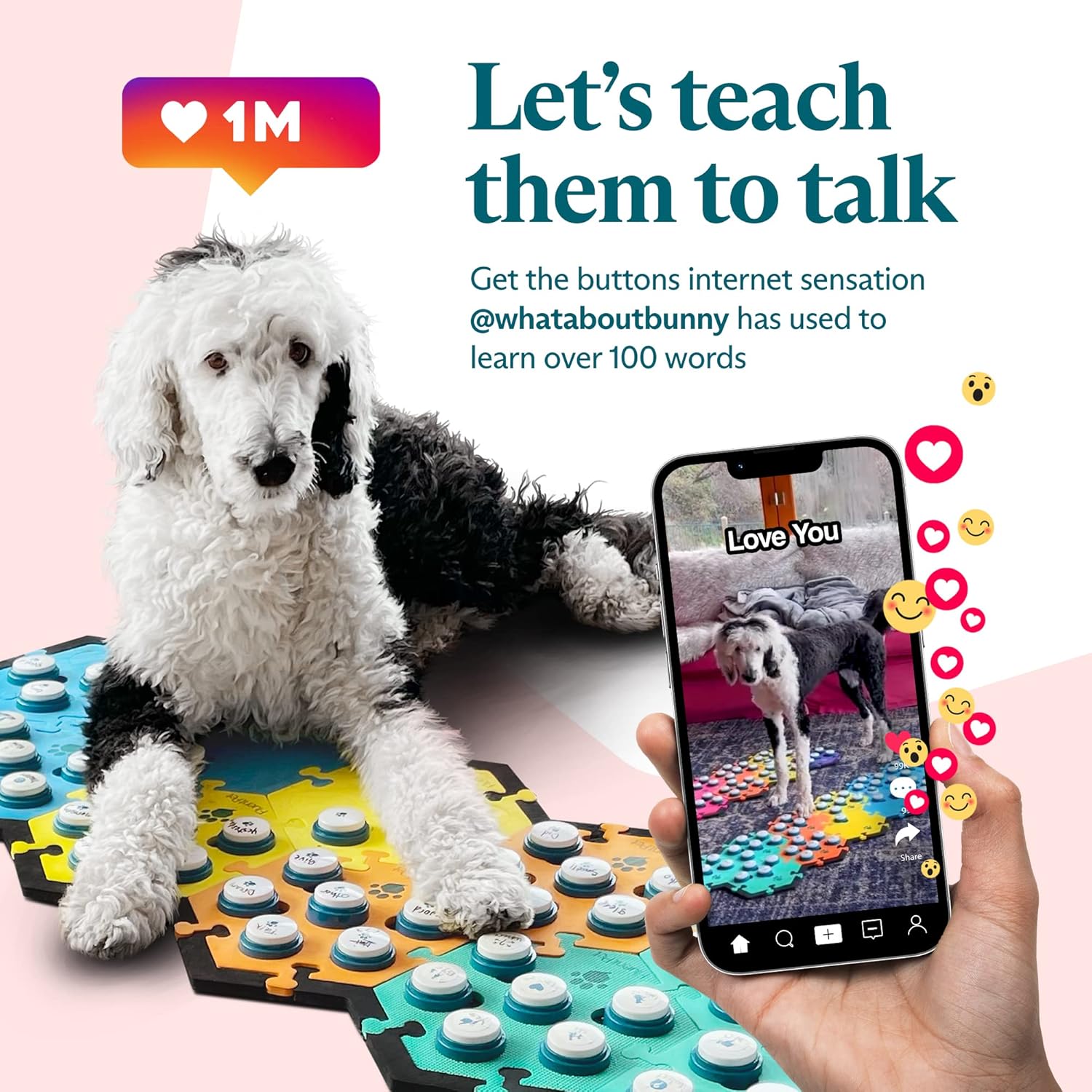 - 【 SECURE & EXPANDABLE FOR GROWING VOCABULARIES 】: Each patented HexTile holds up to 6 talking buttons snugly in place while taking up minimal space in your home. As your dog or cat learns new words, simply add more buttons to create a continuously expanding communication system that grows right along with your dog’s abilities.