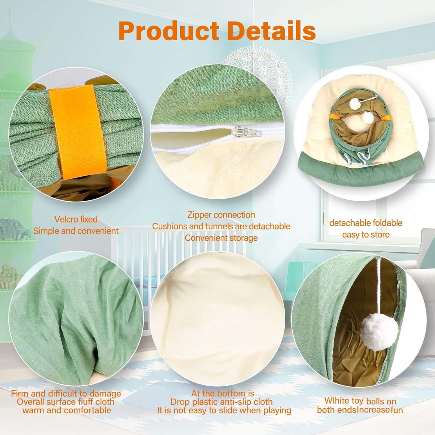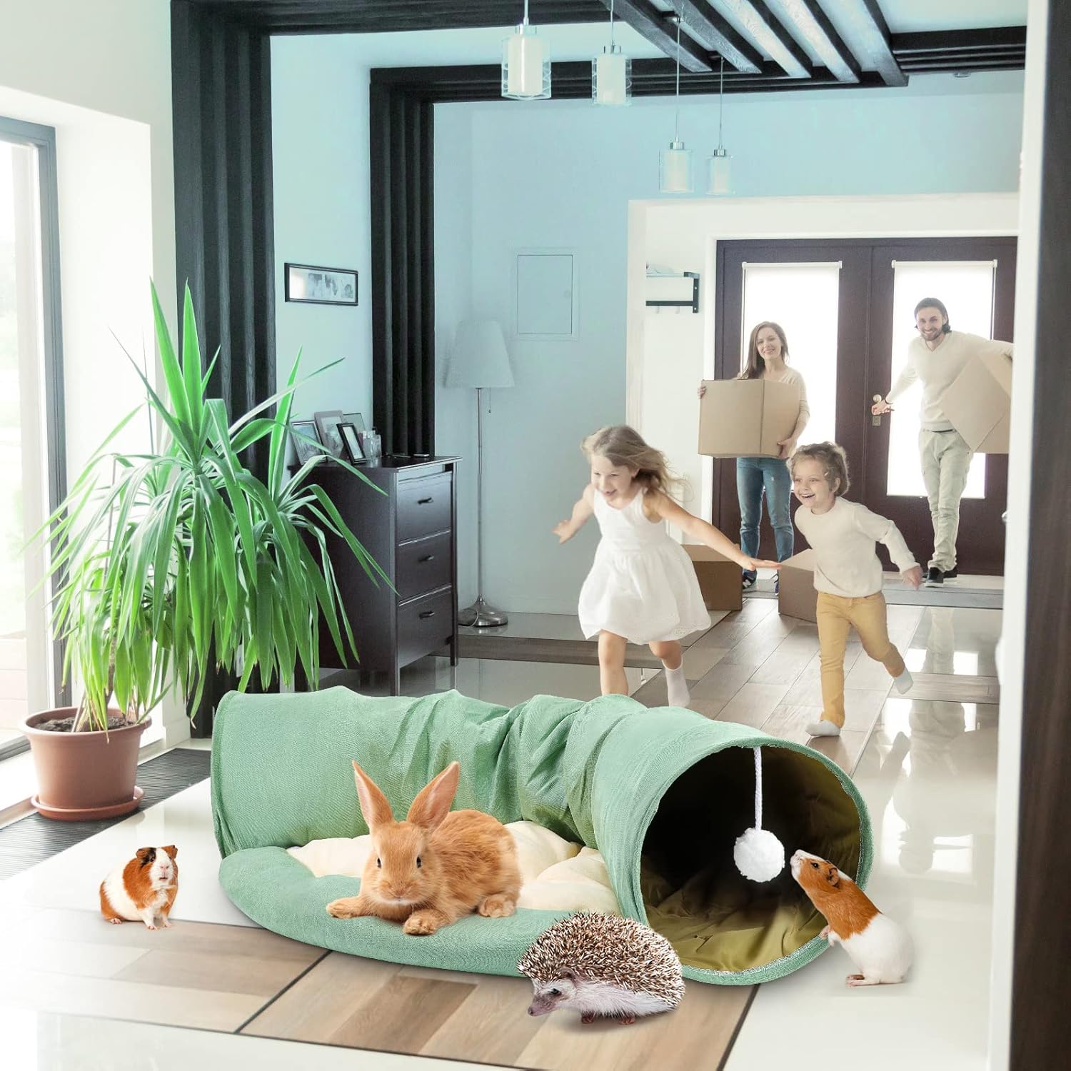 - Detachable Design: The rabbit bed tunnel is the ideal pet bed and rabbit tunnels for indoor rabbits interactive. The cushion and tunnel can be removed for easy washing.