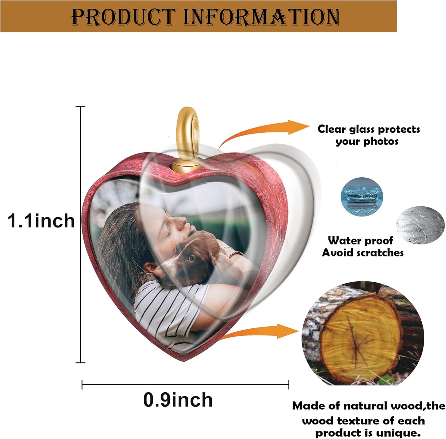 - 【Witness Of Deep Love - Personalized Pet Ashes Necklace】This necklace pendant is made of high quality wood, beautiful and charming. A sturdy glass cover protects customized photos and preserves your pet's smile and memories, ensuring your pet's memories are safe and secure.