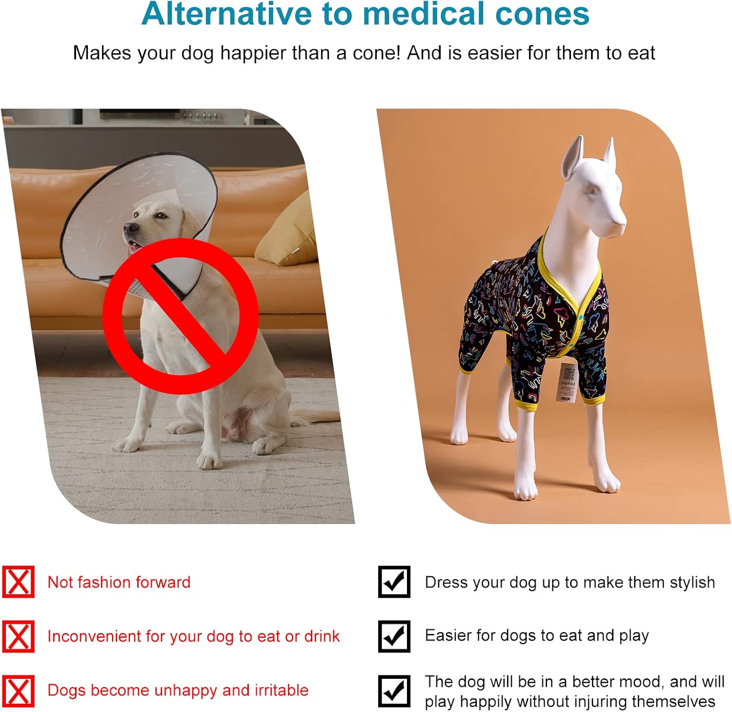 - Assisting Dog Recovery. Our dog onesie alternatives to recovery suits or dog cones or a combination with large dog cones.Our dogs pajamas allow dogs to move and eat freely,your puppy will fell homey and won’t be annoyed.