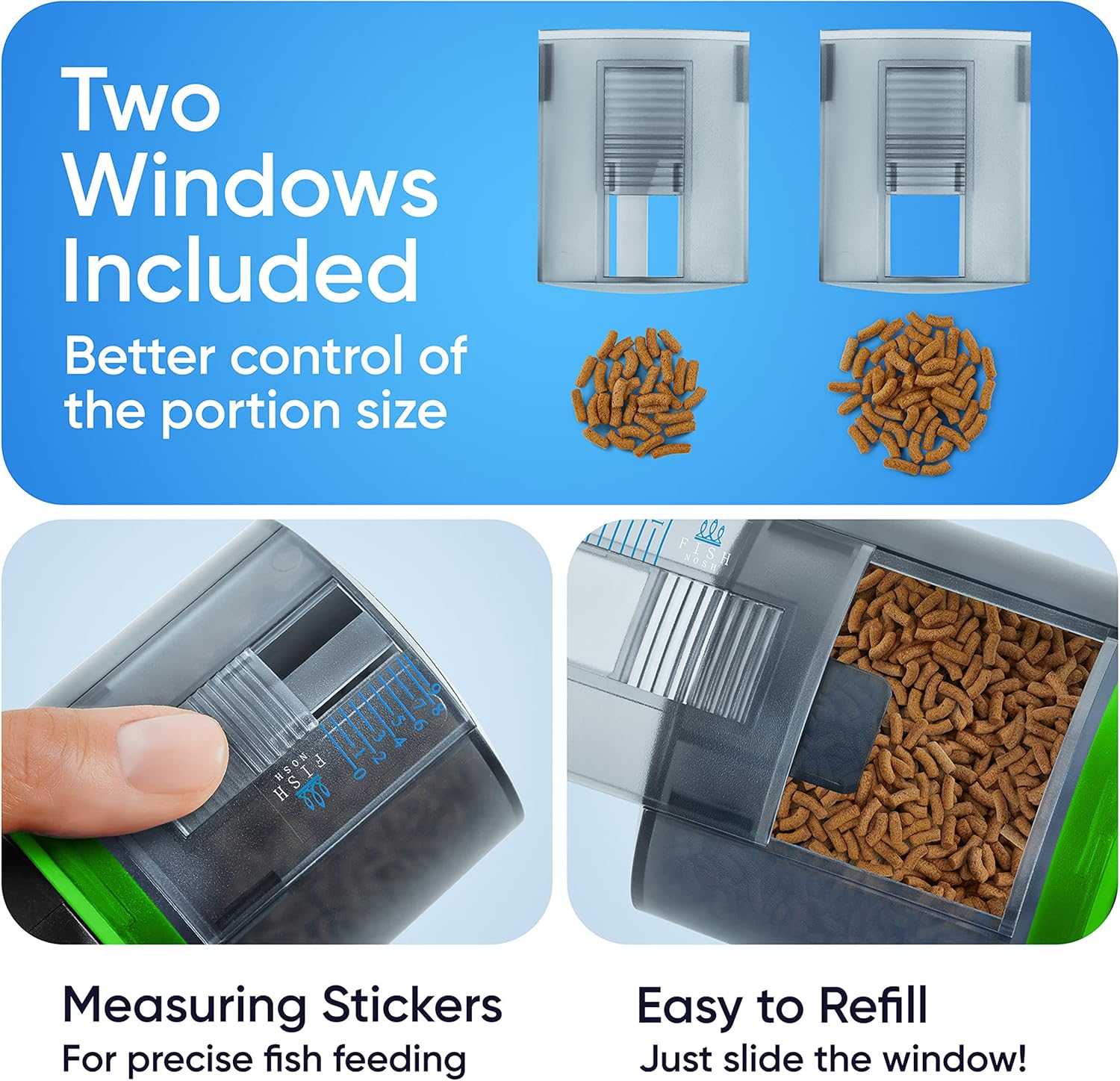 - So Easy, Even Kids Can Do It: Our package includes clear and thorough directions for operating the vacation fish feeder. Once it's set, you can refill the food without removing it and simply reset the timer.