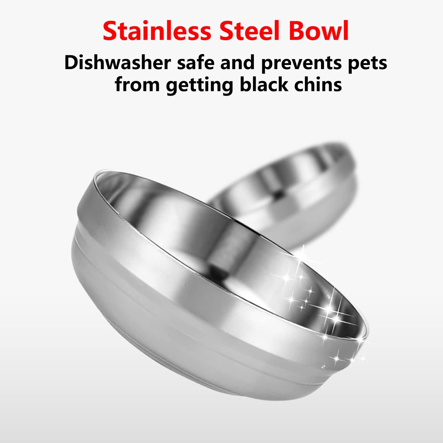 - 【Prevent Black Chin】The stainless steel bowl does not easily accumulate stains and dirt, which effectively prevents black chin. It is easy to clean and can hold 9.5oz food.