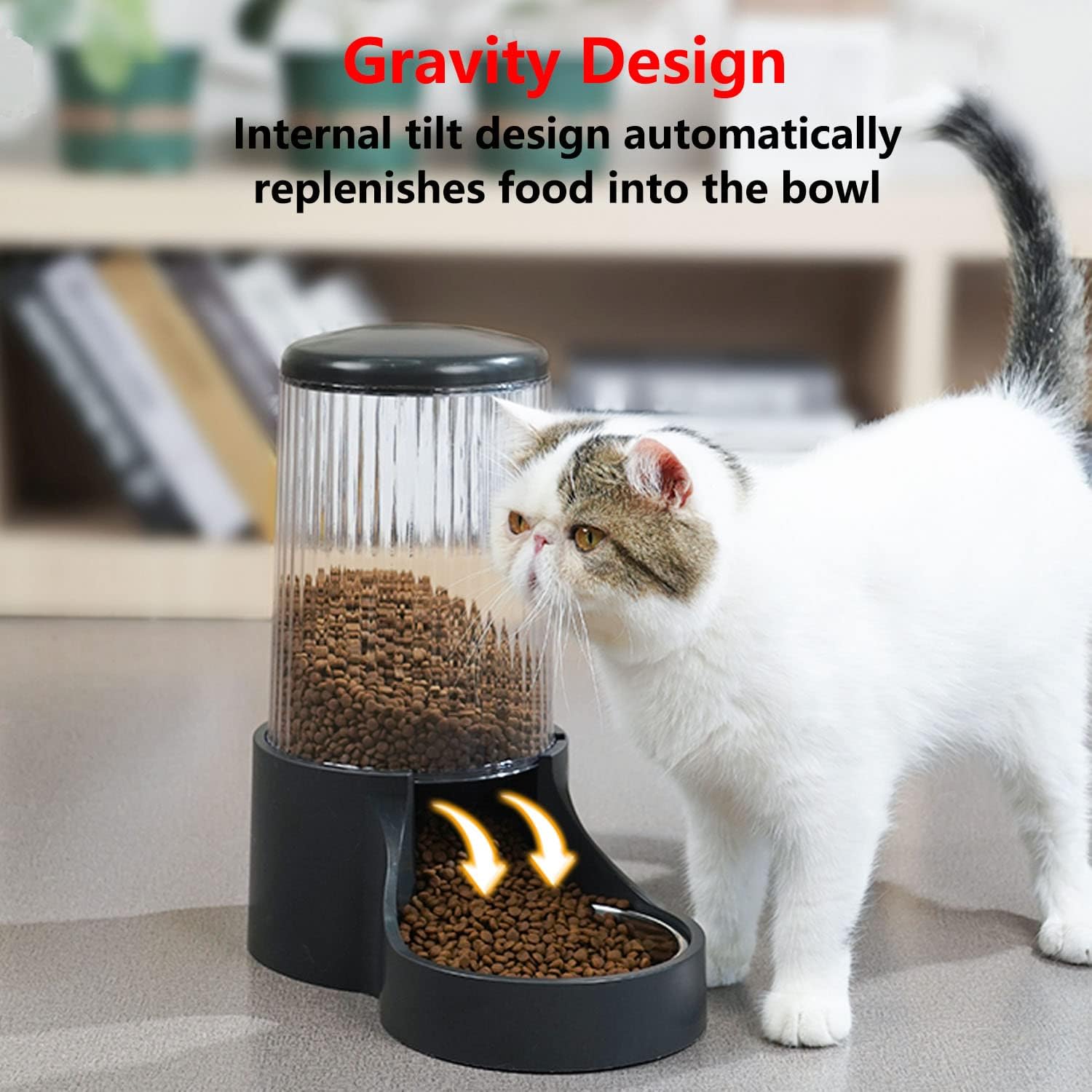 Automatic Cat Feeder, 3.8L Large Gravity Cat Food Dispenser with Detachable Top Lid, Visible Bottle and Stainless Steel Bowl for Pets (Black)