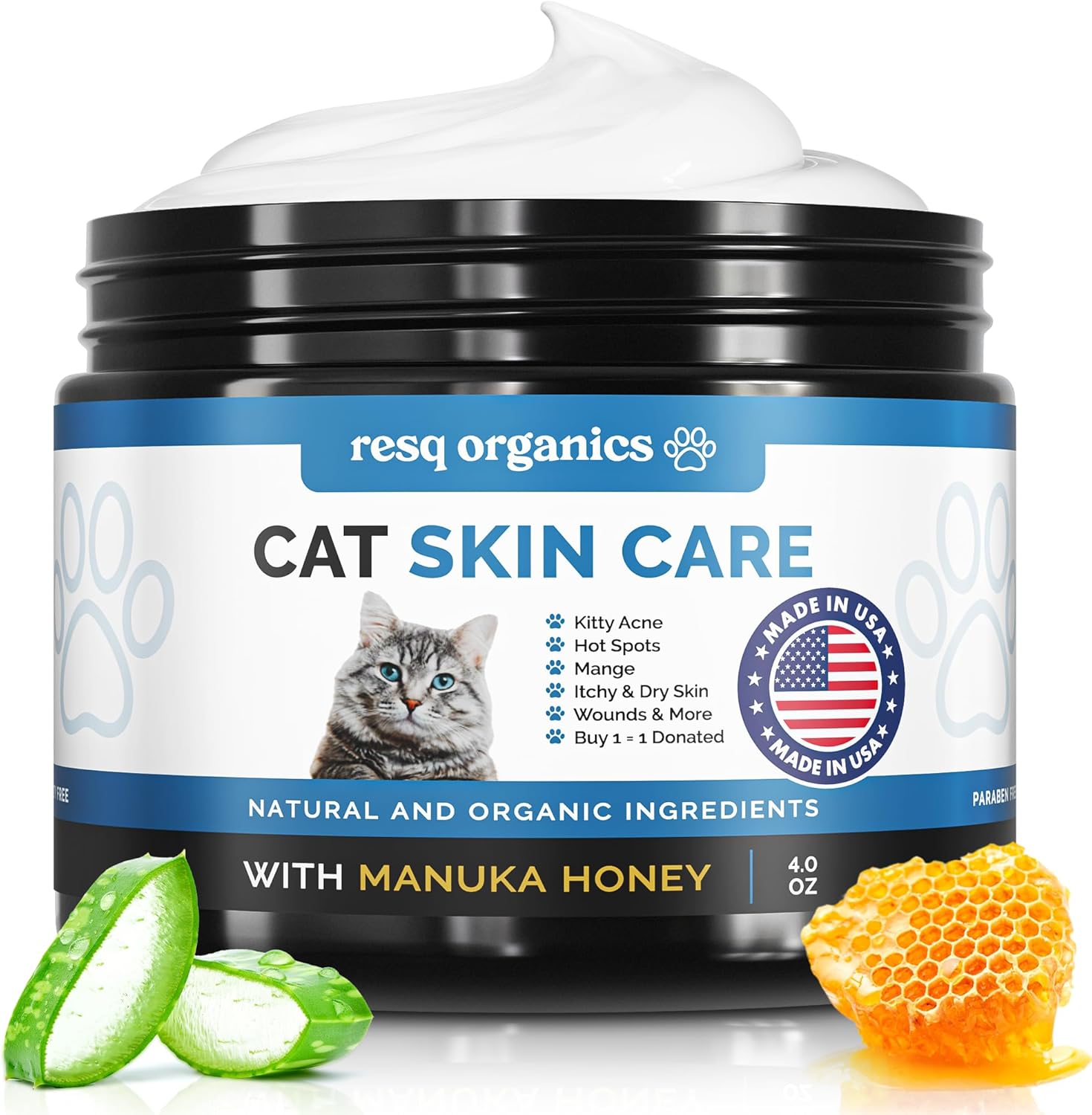 Cat Paw Balm Cat Cream 4 oz: Hot Spot Treatment for Cats Dermatitis, Mange Treatment, Cat Itchy Skin Relief for Dry Skin, Pet Wound Care, Natural Allergy Relief with Manuka Honey, Aloe Vera, Vitamin E