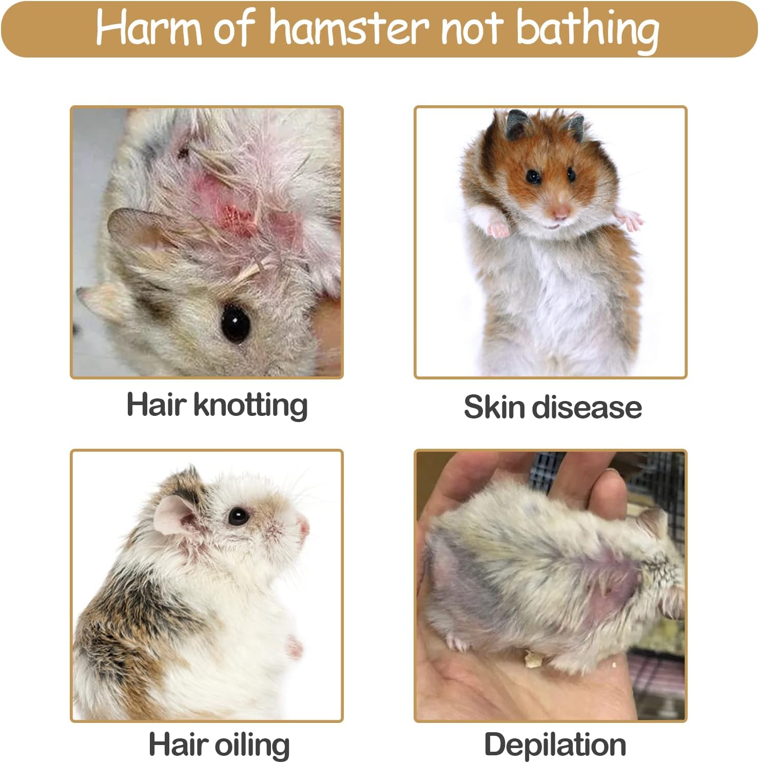 - Must Hamster Accessories:Hamster likes bathing to keep their fur clean and fresh.Chinchilla sand bath can help prevent the fur from becoming greasy or smelly and reduce skin issues.Desert sand for hamster will keep pets fur shiny and well-groomed