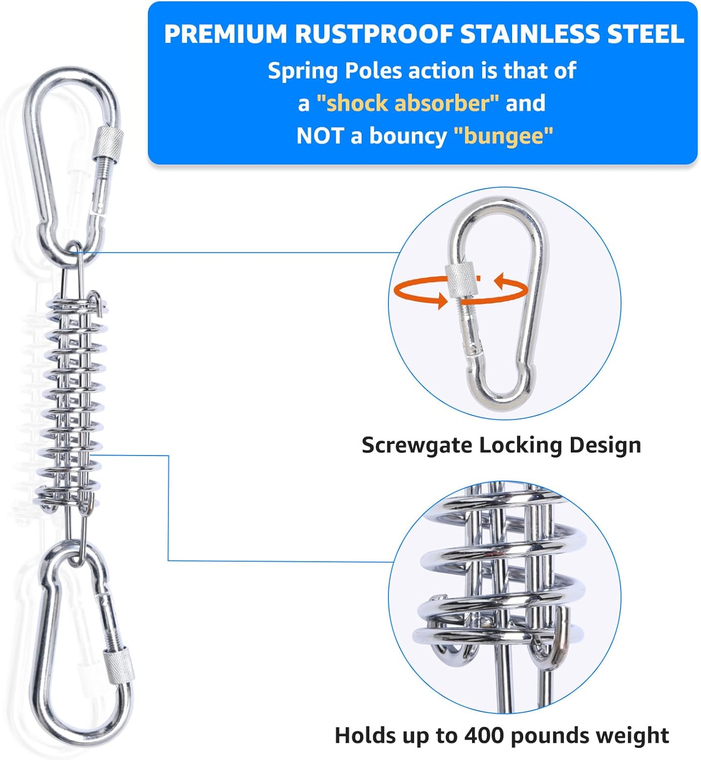 - 【CAUTION】 :The Spring Poles action is that of a “shock absorber” and not a bouncy “bungee”. The bottom of this rope toy should be roughly 1-6 feet from the ground to make sure your dog not to bite onto the metal and their back legs touch the ground to get a full body workout.Rope toy is NOT an indestructible chew toy.