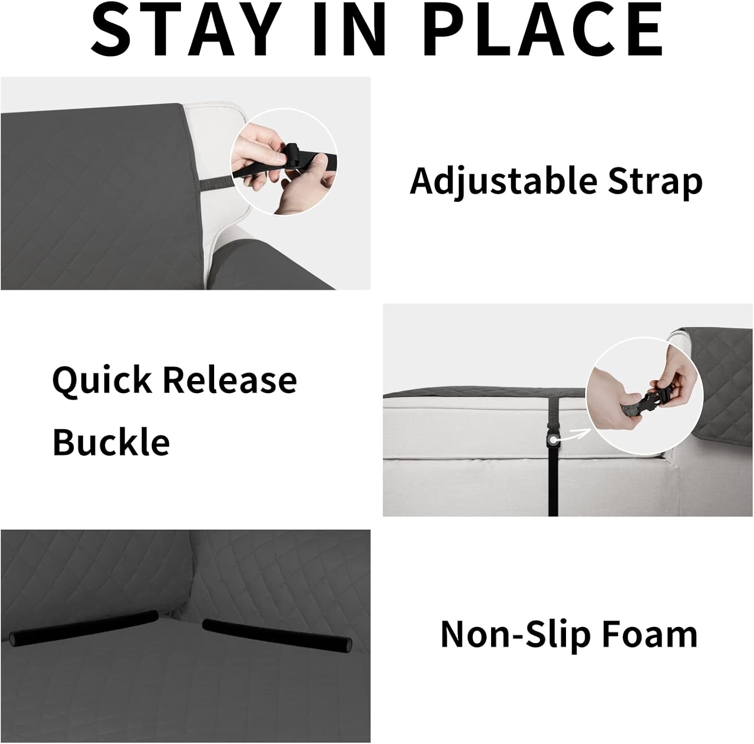 - PREVENT SLIDING/EASY TO INSTALL: Just drape it on, tuck any extra fabric into the gap. The foam tube can be plugged into the gap between the seat and the armrest, and the fixed fabric will not slide. The back of the sofa and the middle of the chaise is fitted with adjustable elastic.