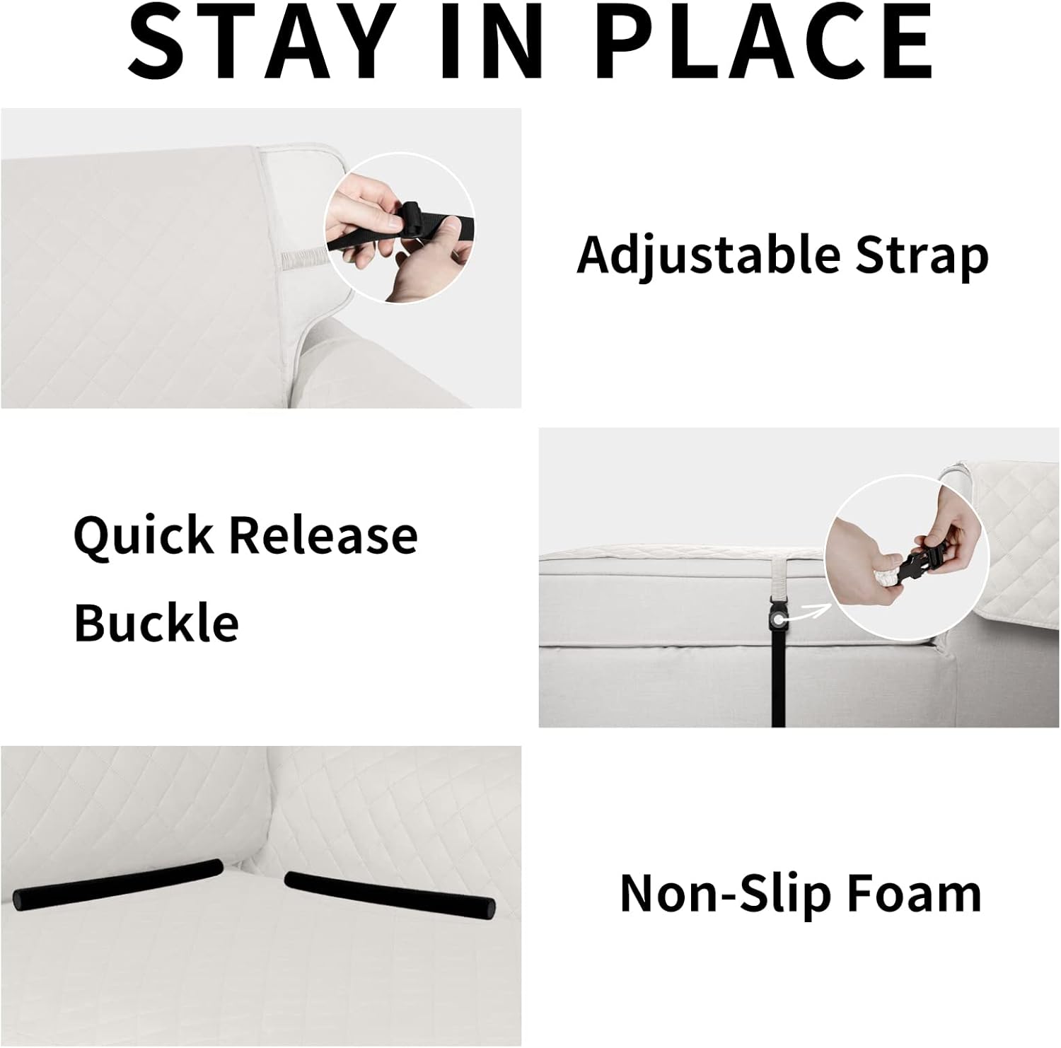 Easy-Going Reversible Chaise Lounge Couch Cover Water Resistant Sofa Cover Sectional L Shaped Sofa Slipcover with Adjustable Straps Furniture Protector for Dogs (115X34 in, Ivory/Ivory)