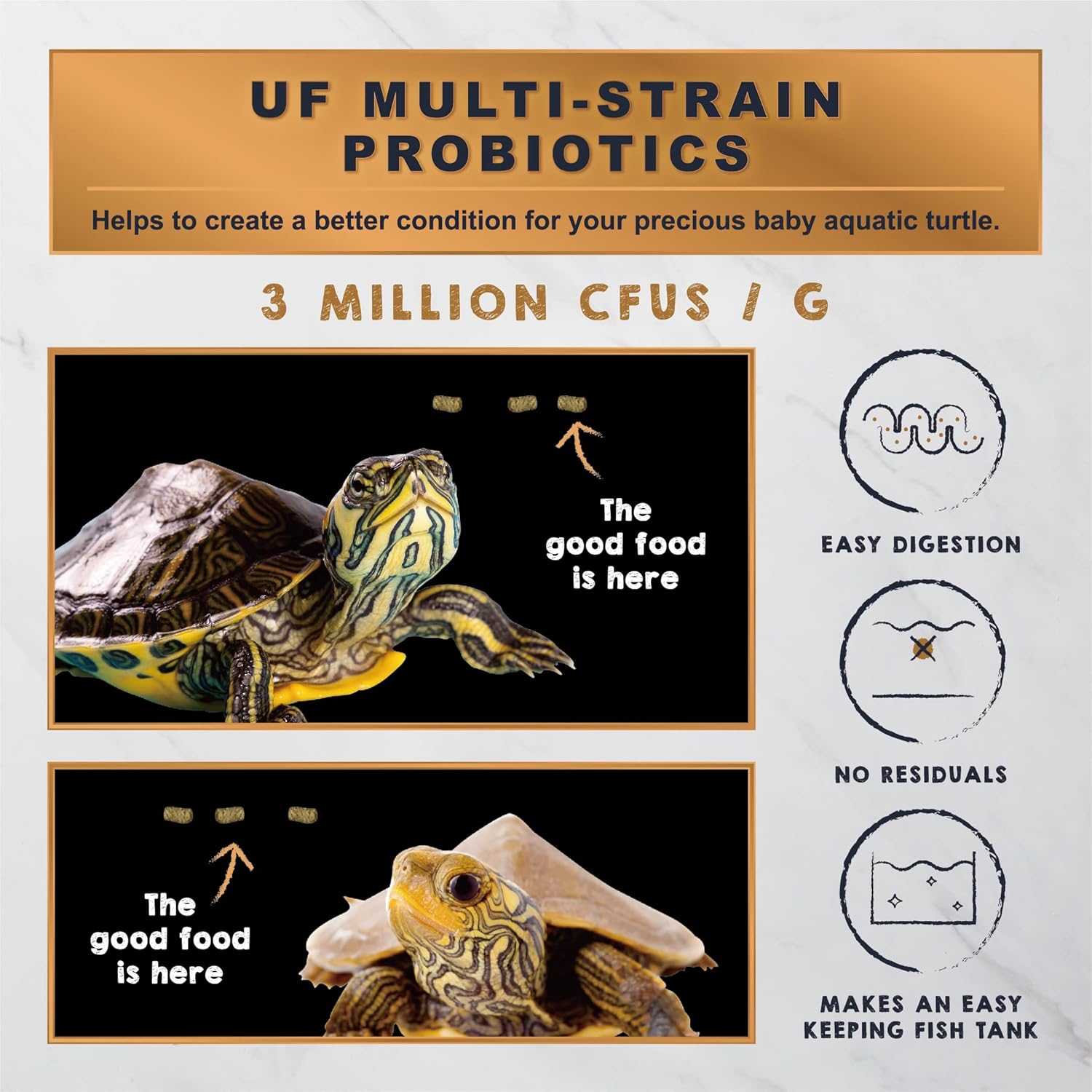 - Easy to Intake & Digest : 10 hours of low temperature processing and enhanced with probiotics, preserving the natural flavors and rich nutritional values. Designed to be rapidly softened, but doesn't disintegrate and cloud the water. Easy intake for baby aquatic turtles helps with easy digestion and complete absorption of nutrients