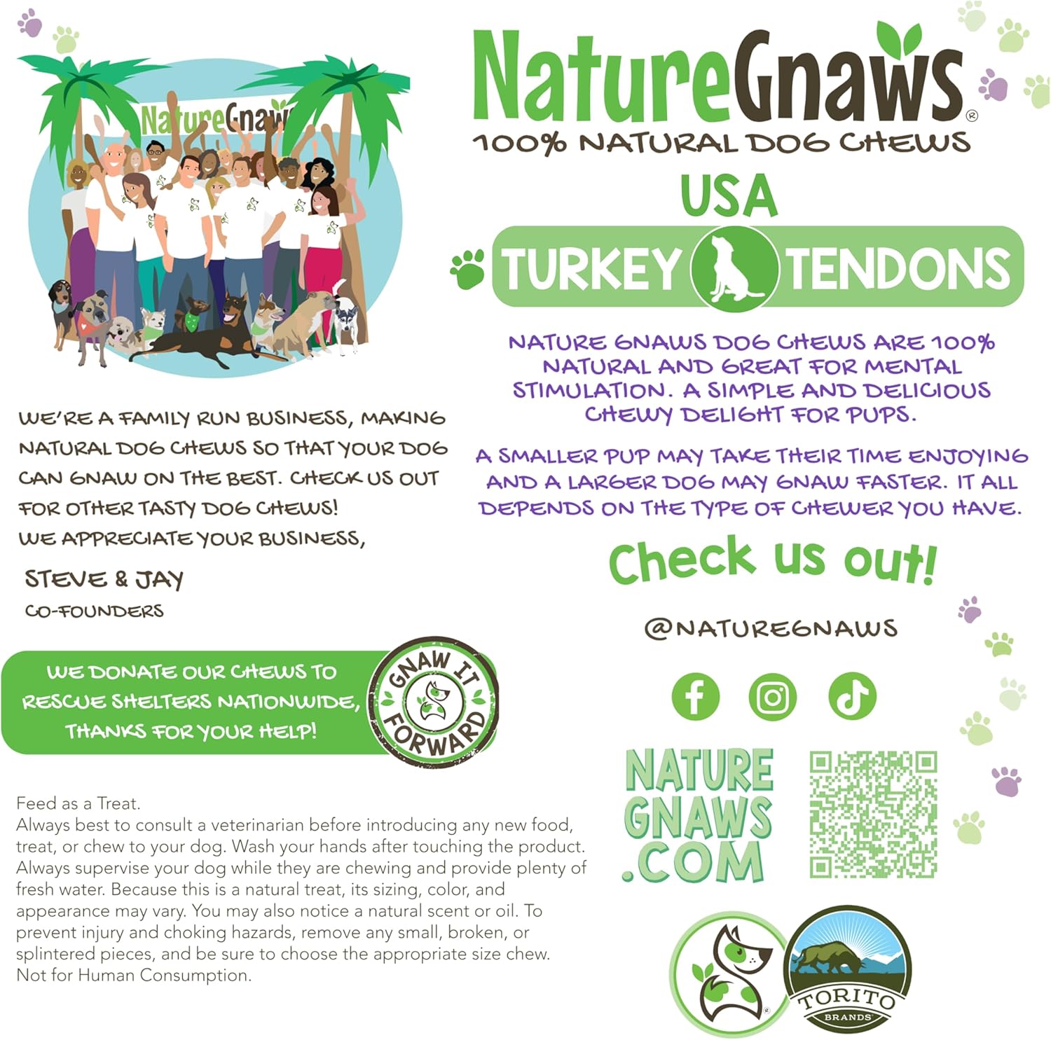 - NATURE GNAWS - As a family-run business, we are dedicated to providing 100% natural dog chews, bully sticks and treats made with responsibly sourced ingredients to ensure they are the best simple, natural, and delicious products for your beloved pups.