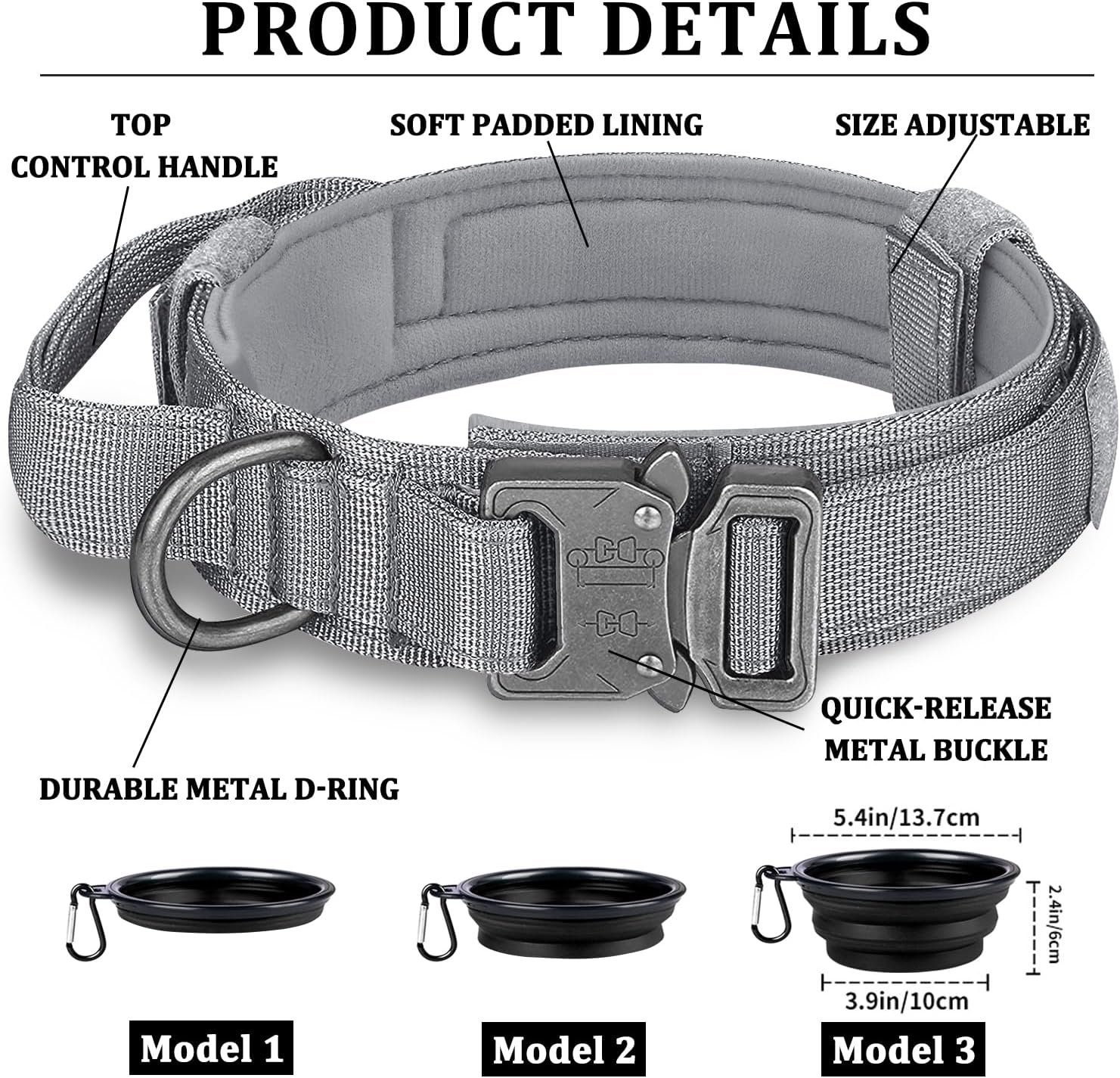 - MULTIPLE USE FUNCTIONS - Tactical dog collar is great for dog training, patrolling, hiking, working, walking, running, and hunting. Adjustable for medium and large dogs, such as German Shepherd, Border Collie, Rottweiler, Great Dane, Doberman Pinscher, Golden Retriever, Husky, Labrador, Alaskan Malamute etc.