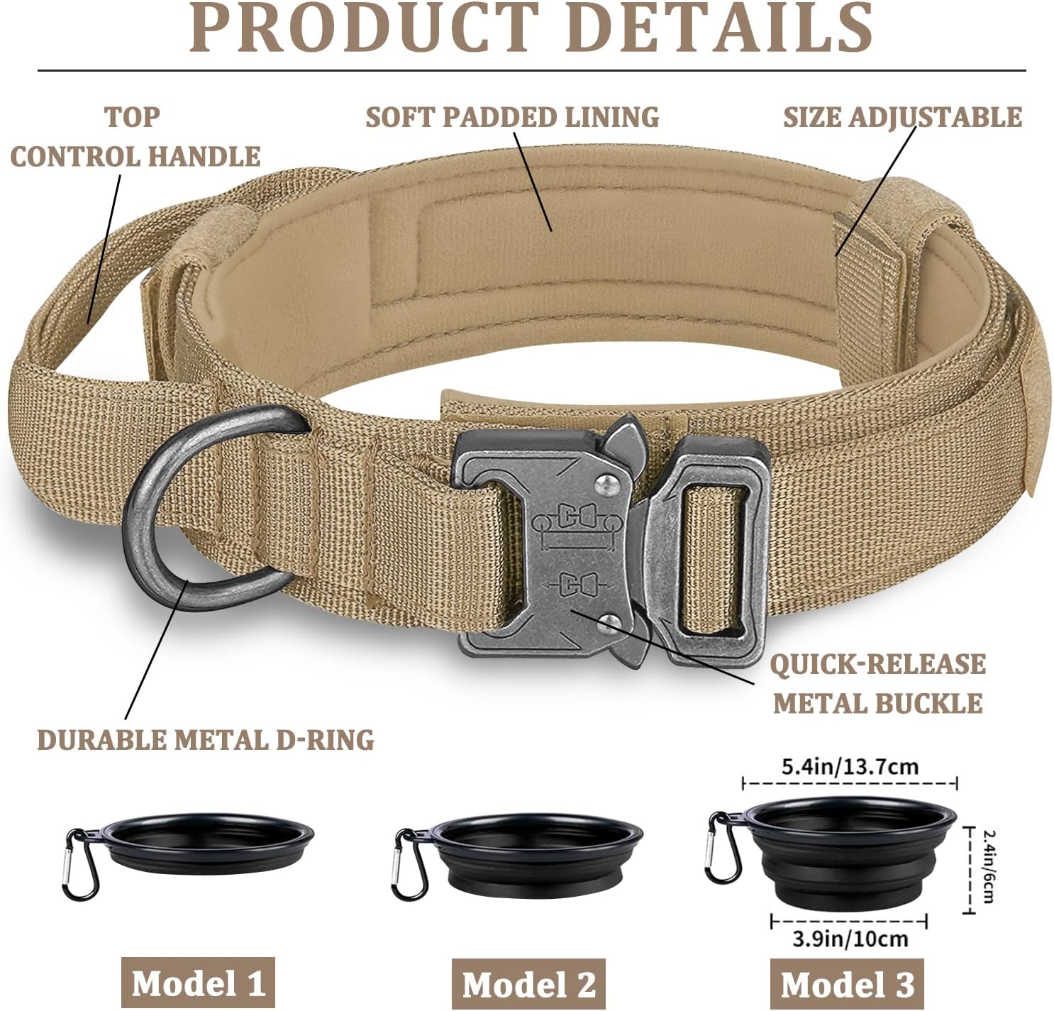 - EMERGENCY HANDLE- The special control handle on this military training nylon dog collar allows you to efficiently control your dog during training, hiking, jogging, hunting, camping, working, running, jumping, traveling, and more.