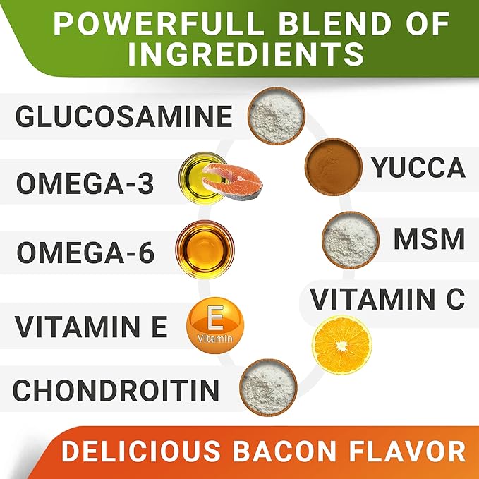 - American Quality Assurance: Our glucosamine for dogs is proudly made in the USA, ensuring top-quality care for your pets with 24/7 customer support. Rescue your puppy's joints with our delicious bites!