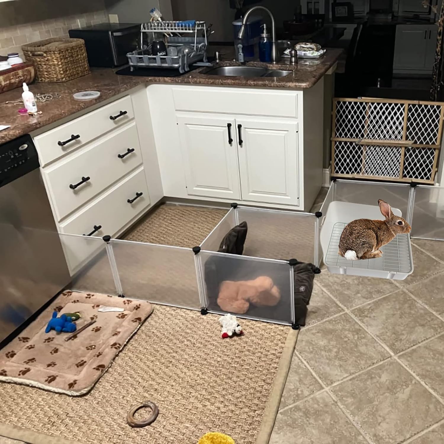 - Reduce Mess:The tray grid design of rabbit litter box toilet separates your pet from excrement.The rabbit toilet box makes scooping and cleaning much easier.The grid of guinea pig potty box allows urine to drain through into the tray below while containing solid waste on top for quick removal.Don't worry about soiling floor
